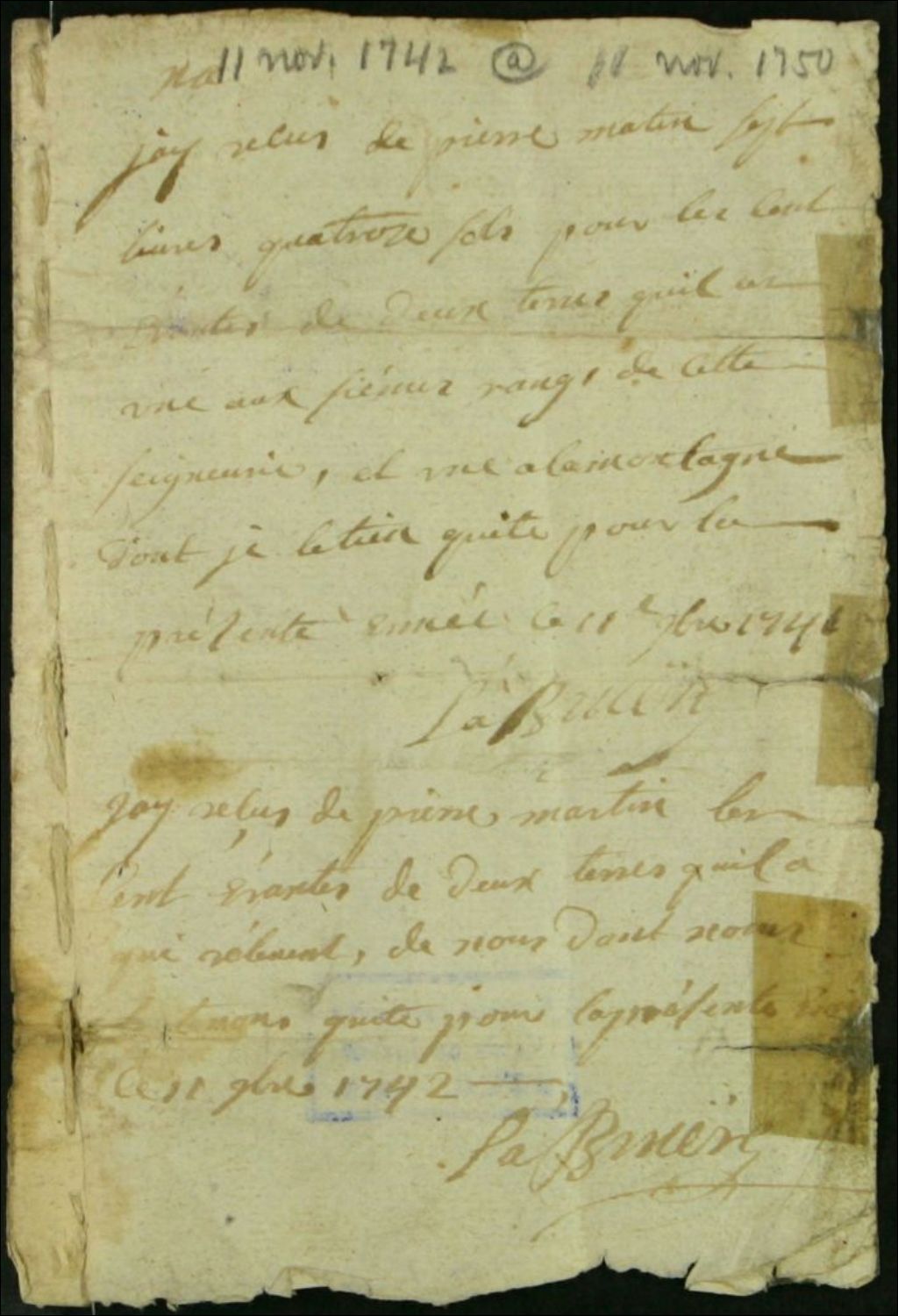 - Quittances de La Bruyère à Pierre Martin pour cens et rentes