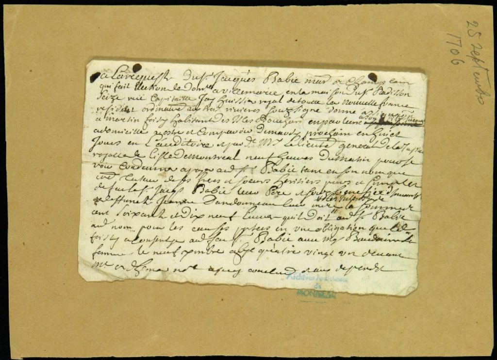 - Procès entre Jacques Babie, marchand de Champlain, demandeur, et Martin Foisy, habitant des îles Bouchard, défendeur, pour le paiement d'un billet