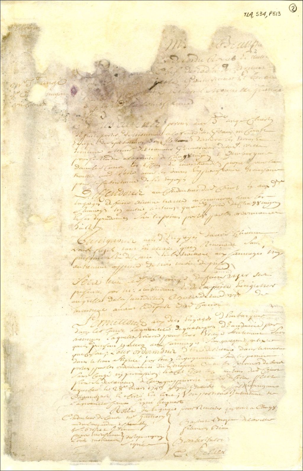 Montréal. Enregistrement d'une permission accordée par Charles de Beauharnois, gouverneur de la Nouvelle-France, le 28 mars, à St-Ange Charly, d'un canot et sept hommes, pour se rendre à la Pointe de Chagouamigon, 1743, Archives nationales à Montréal, Fonds Juridiction royale de Montréal, (06M,TL4,S34,P513).