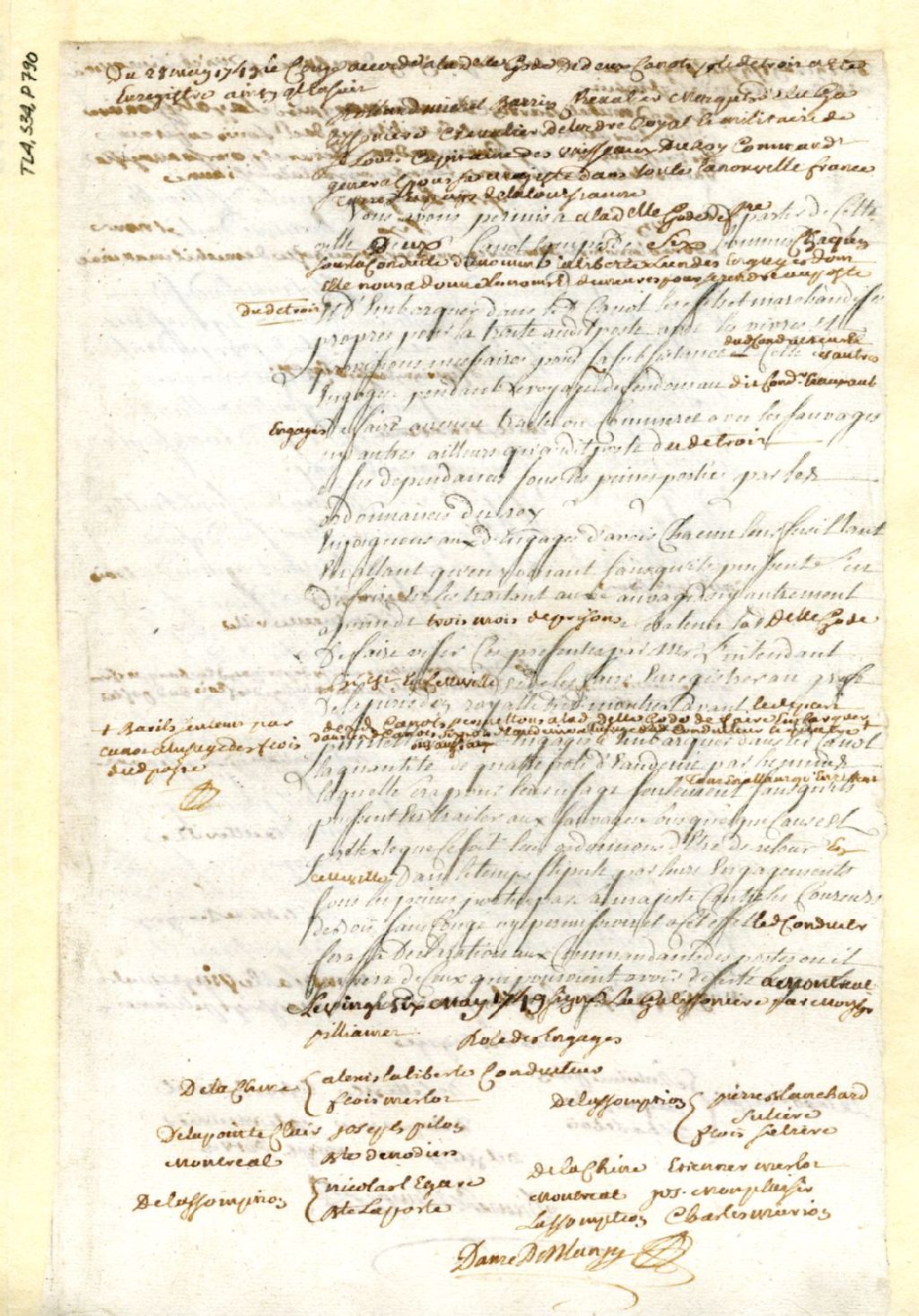 Les engagés sont Alexis Laliberté, conducteur et François Merlot, de Lachine; Joseph Pilon, de Pointe-Claire; Baptiste Denodiers (?), de Montréal; Nicolas Légaré, Baptiste Laporte, Pierre Blanchard; ¿ Sulière et François Sulière, de l'Assomption; Etienne Merlot, de Lachine; Joseph Montplaisir, de Montréal; Charles Marion, de l'Assomption