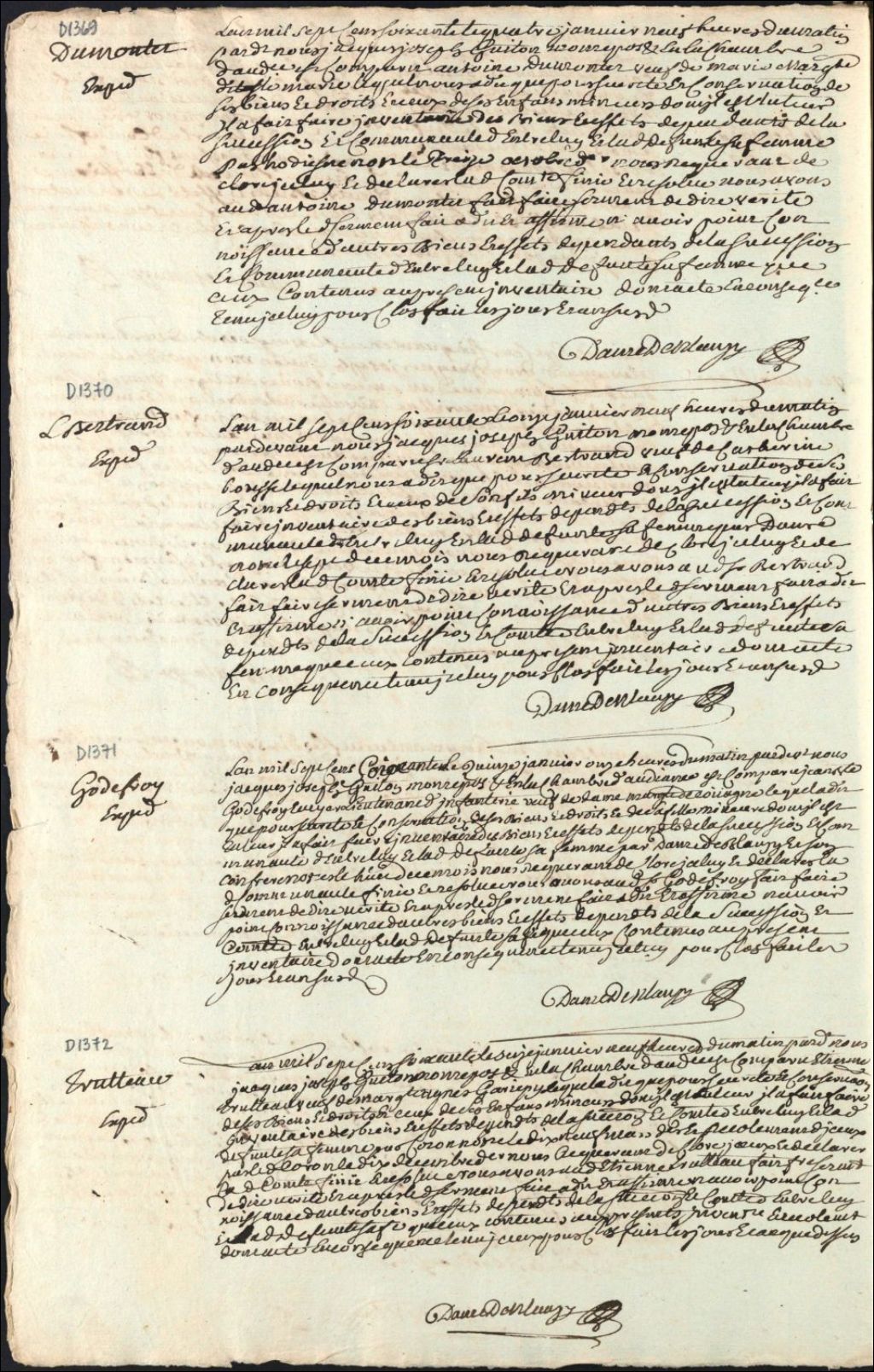 Clôture d'inventaire des biens de la succession et de la communauté de Jean-Baptiste Godefroy, lieutenant d'infanterie et de défunte Marguerite Decouagne
