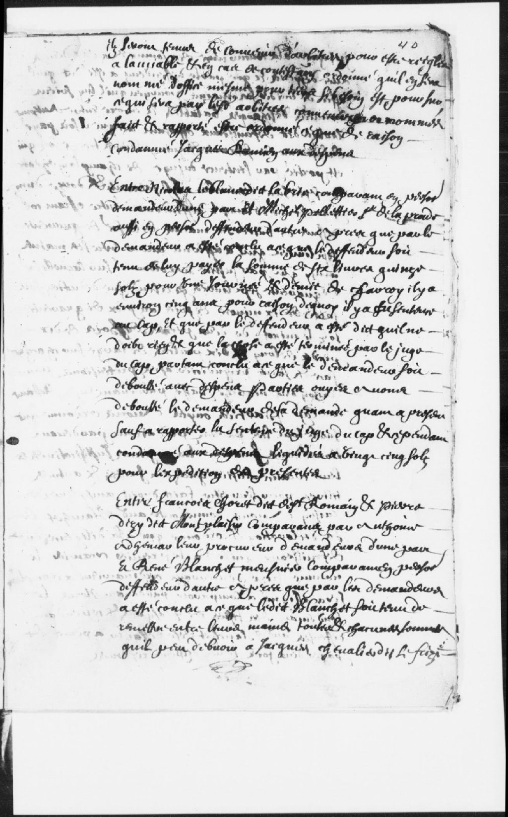Requête de Nicolas le Blanc (Leblanc) dit la Brie (Labrie), demandeur, contre Michel Pelletier, sieur de la Prade (Laprade), défendeur, demandant la somme de 6 livres et 15 sols pour une journée et demie de charroie, il y a environ 5 ans, pour raison de quoi il y a eu sentence au Cap; le défendeur prétend qu'il ne doit rien et que la cause a été terminée par le juge dudit Cap; le demandeur est débouté de sa demande et il est condamné aux dépens liquidés à 25 sols