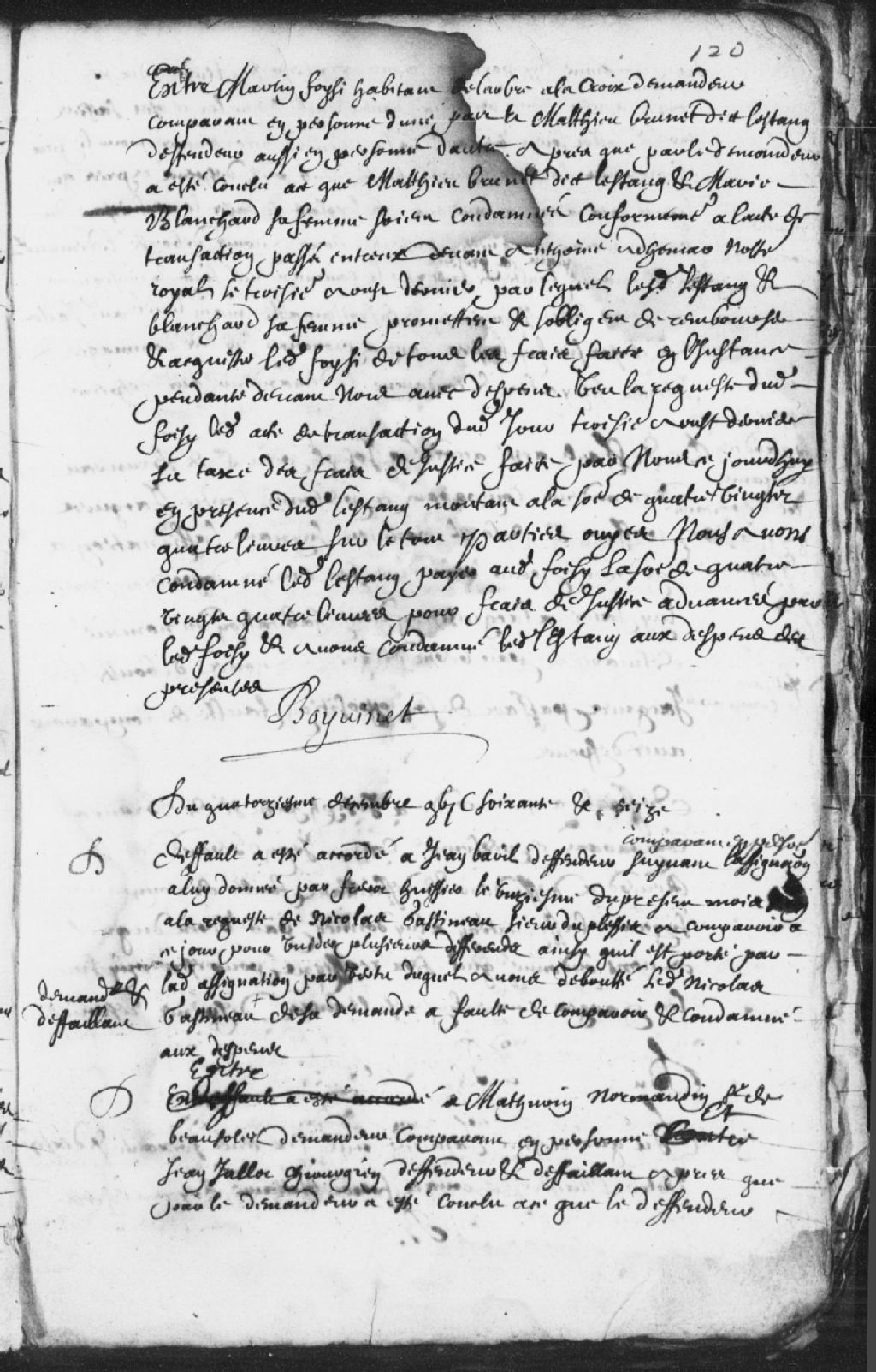 Requête de Mathurin Normandin, sieur de Beausoleil, demandeur, contre Jean Jallot (Jalot), chirurgien, défendeur et défaillant, pour la somme de 107 livres et 10 sols de compte arrêté et que les choses saisies sur ledit Jallot soient vendues; défaut accordé en vertu duquel le demandeur est débouté de sa demande; quant à la saisie, elle est déclarée injurieuse et déraisonnable et il est ordonné mainlevée audit Jallot des choses sur lui saisies; ledit demandeur est condamné aux dépens, 14 décembre 1676, Archives nationales à Trois-Rivières, Fonds Juridiction royale des Trois-Rivières, (04T,TL3,S11,P1545).