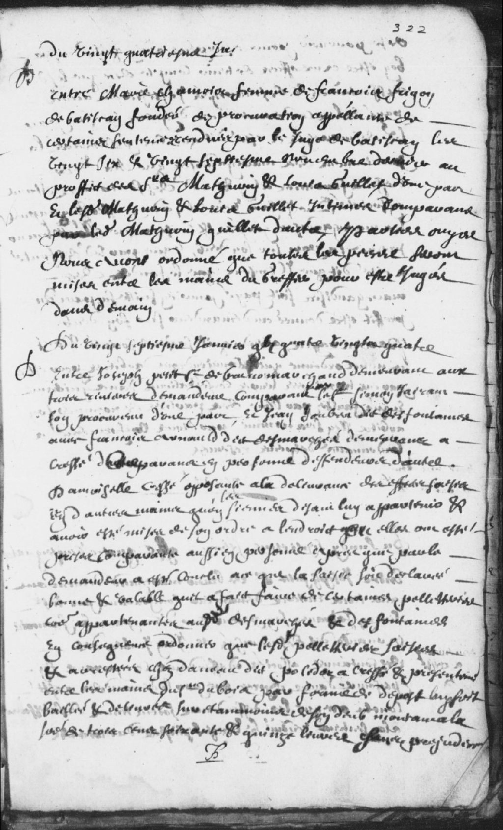 - Requête de Joseph Petit, sieur de Bruno (Bruneau), demandeur, comparant par le sieur Simon Jairant (Jarent), son procureur, contre Jean Joubert dit Desfontaines et François Arnauld (Arnaud) dit Desmarchets (Desmarchais)...