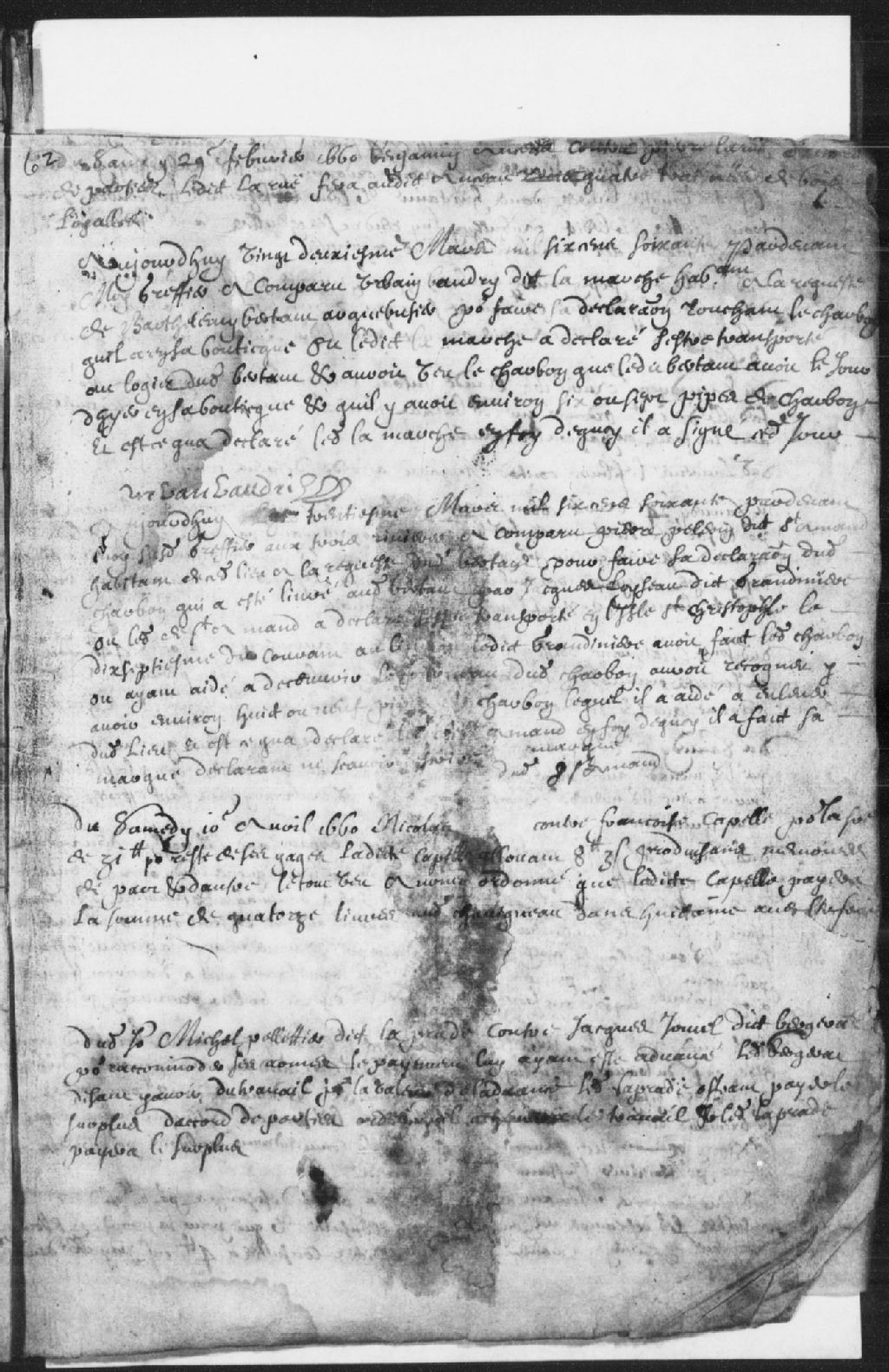 Requête de Michel Pelletier dit la Prade (LaPrade) contre Jacques Jouiel (Joyal) dit Bergerat pour raccommoder ses armes, le payement lui ayant été avancé. Ledit Bergerat disant avoir du travail pour la valeur de l'avance, ledit la Prade offrant de payer le surplus. Les parties d'accord, ordonné que ledit Laprade payera le surplus