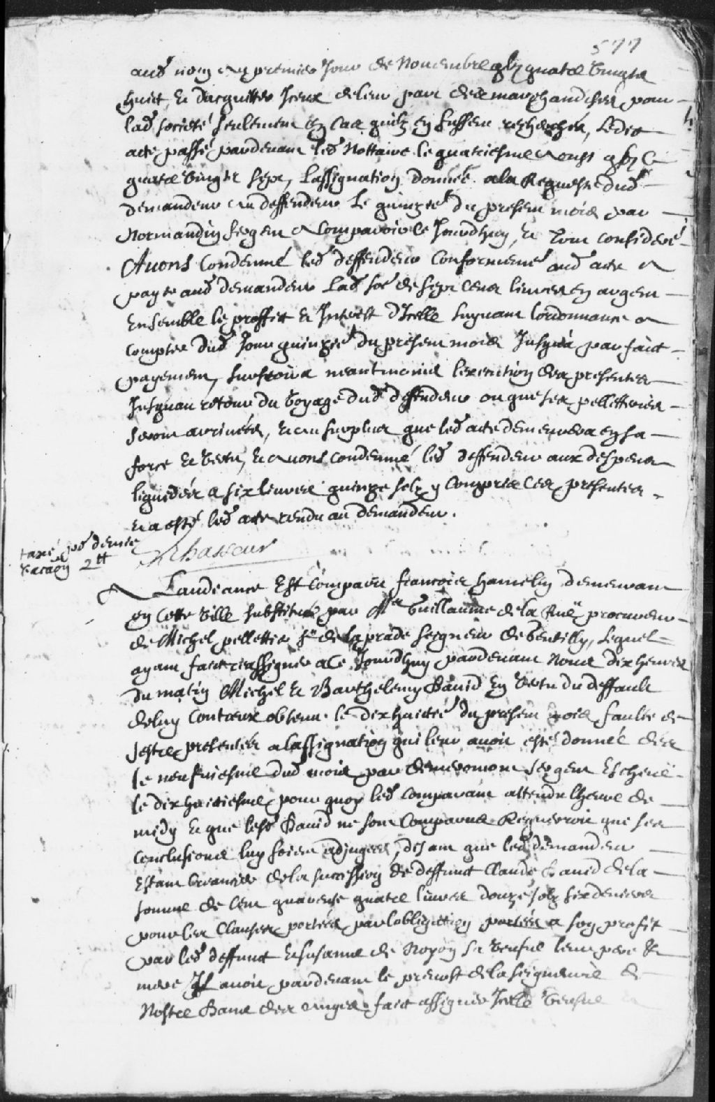 - Comparution de François Hamelin, substitué par maître Guillaume de la Rue (Larue), procureur de Michel Pelletier, sieur de la Prade (Laprade), contre Michel et Barthélemy David...