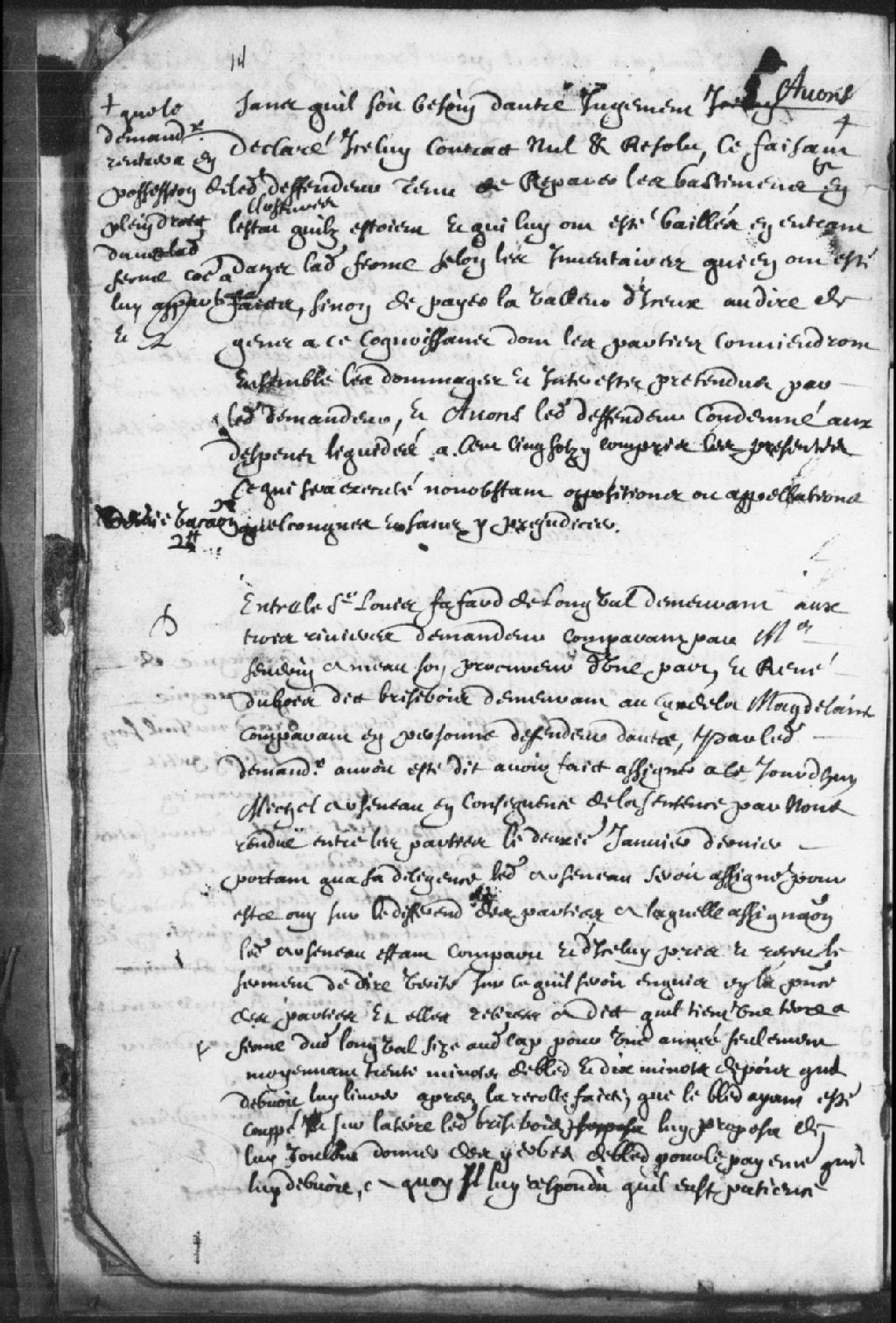 Témoignage de Michel Arseneau (Arsenault) dans l'instance impliquant Louis Fafard de Longval, comparaissant par maître Séverin Ameau, son procureur, demandeur, à l'encontre de René Dubois dit Brisebois, demeurant au Cap-de-la-Madeleine, défendeur..., 5 février 1691, Archives nationales à Trois-Rivières, Fonds Juridiction royale des Trois-Rivières, (04T,TL3,S11,P2296).