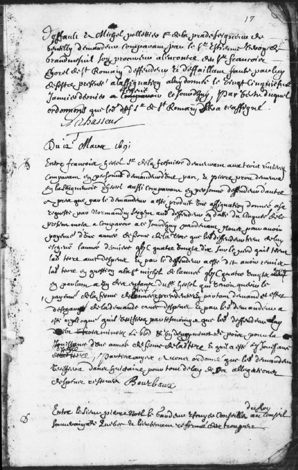 Requête de Pierre-Noël le Gardeur (Legardeur), conseiller du Roi au Conseil souverain de Québec et lieutenant réformé des troupes, comparaissant par Claude Vollant (Volant), demandeur, à l'encontre de Joseph Petit, défendeur..., 12 mars 1691, Archives nationales à Trois-Rivières, Fonds Juridiction royale des Trois-Rivières, (04T,TL3,S11,P2299).