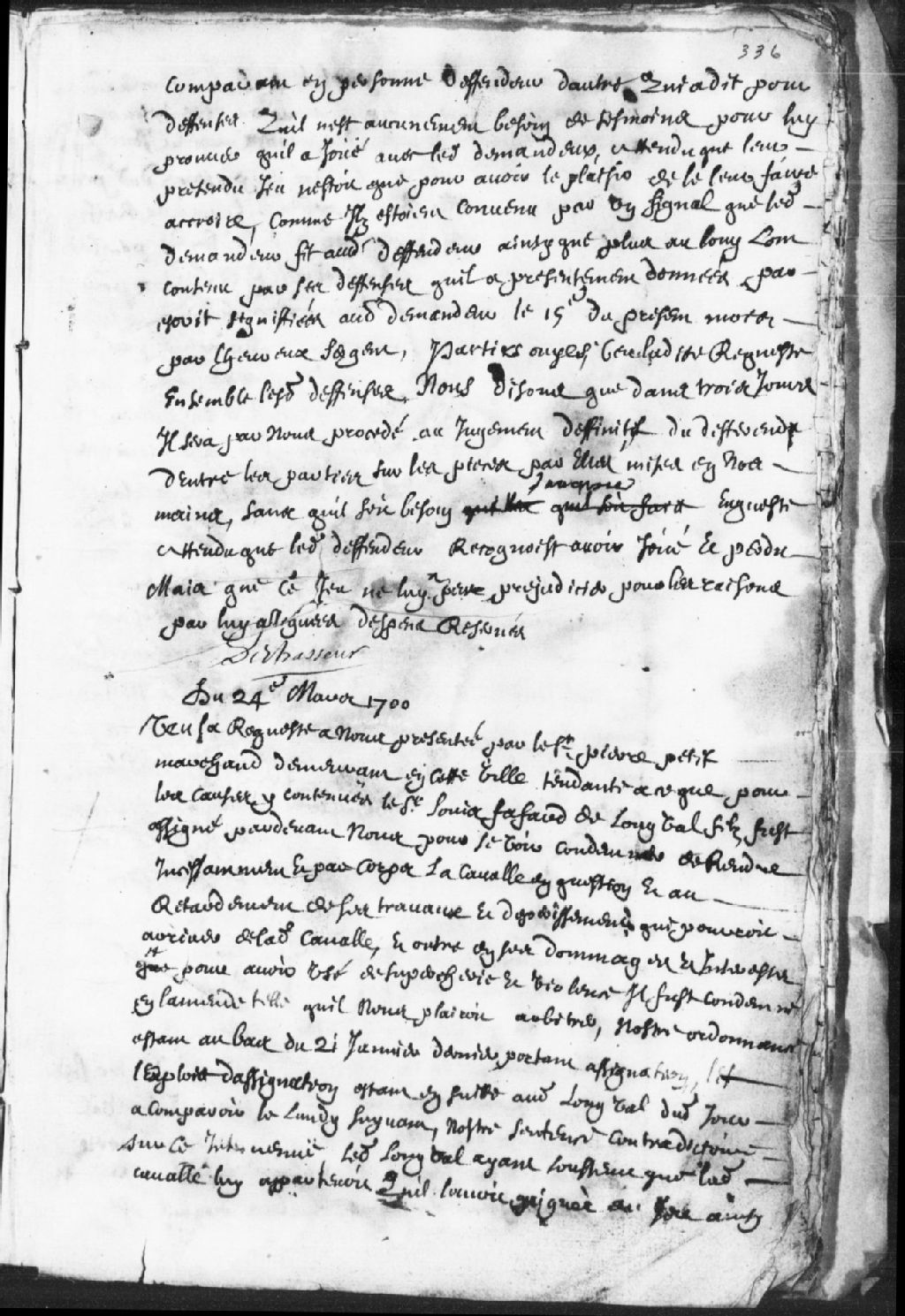 - Le titre complet de la pièce se lit comme suit : Requête de Pierre Petit, marchand, demeurant à Trois-Rivières, d¿une part, à l¿encontre de Louis Fafard de Longval, fils, d¿autre part. Vu la requête présentée à la cour contre ledit Longval pour qu¿il rende au sieur Petit sa cavale et vu la sentence contradictoire rendue par cette cour condamnant ledit Longval à rendre ladite cavale considérant que ledit Longval a affirmé que la cavale lui appartenait et qu¿il l¿a gagnée au jeu. La cour, pour faire droit aux parties, ordonne que ladite cavale reste entre les mains de Pierre Petit. Par ailleurs, d¿autant qu¿il est notoire que des personnes se sont entremises pour accommoder les parties à l¿amiable peu après leur jeu et que ledit Longval leur a remis les intérêts pour 40 livres, ledit Petit est condamné à payer audit Longval lesdites 40 livres, sur lesquelles sera pris 10 livres d¿amende. En outre, ledit Petit est condamné aux dépens de la [...]