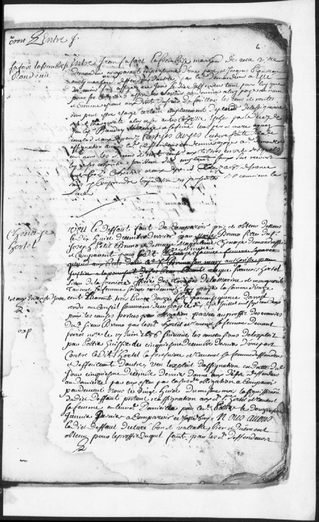 Le titre complet de la pièce se lit comme suit : Requête de Jean Fafart (Fafard) Lafremboise (Laframboise), marchand de Trois-Rivières, demandeur, contre Jacques Rondeau, marchand, défendeur, pour que ce dernier et ses cohéritiers soient condamnés à payer au demandeur au nom et comme étant aux droits du sieur de Forillon les cens et rentes que peuvent être chargés certains emplacements dépendants de la seigneurie de Sainte-Marguerite, échus par le décès de feu sieur Baudry Lamarche et sa femme, leur père et mère; le défendeur est condamné à payer les cens et rentes conformément aux titres et aux dépens taxés à 8 sols de France.