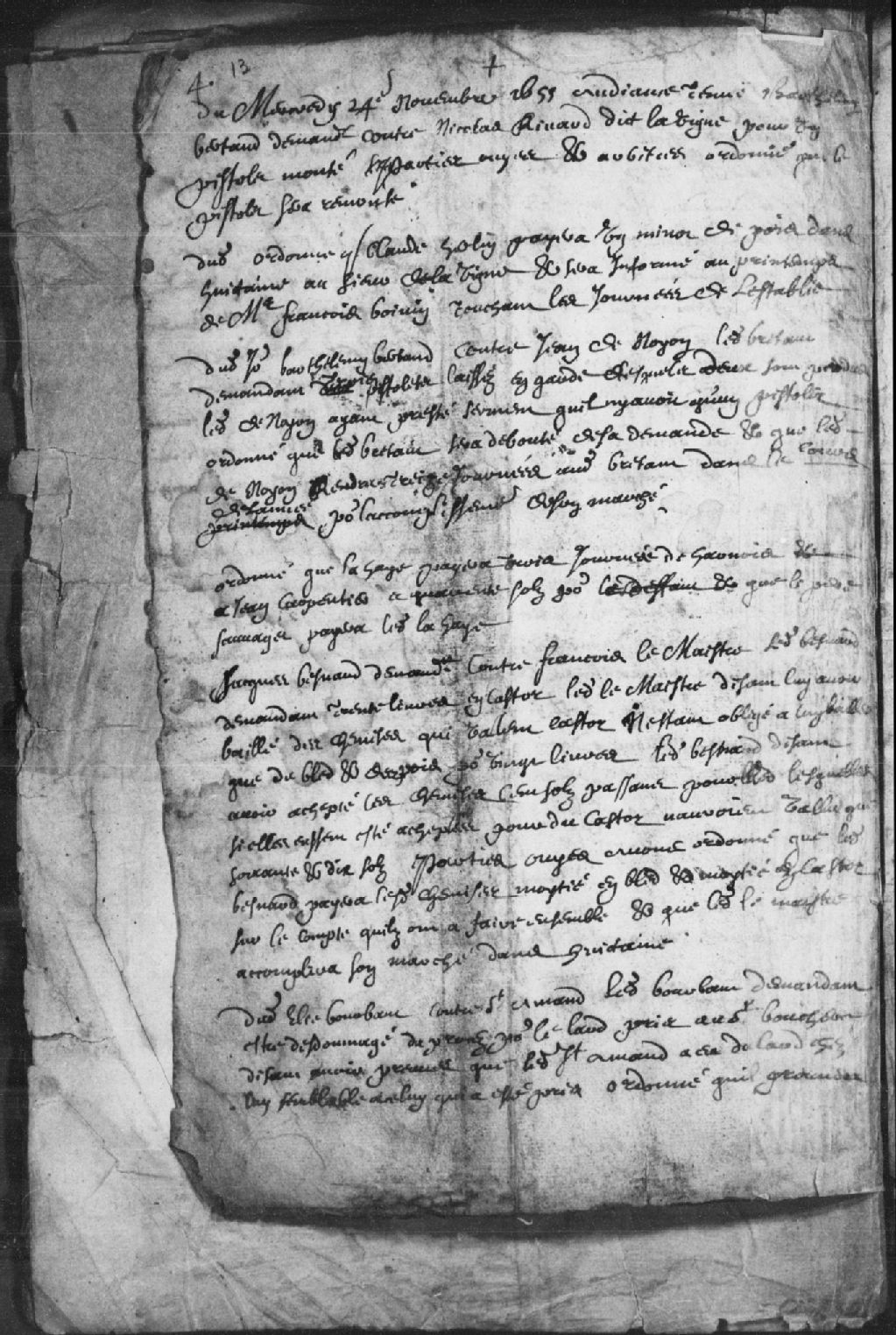 Requête d'Élie Bourbeau contre Saint-Amand demandant d'être dédommagé du procès pour le lard pris au sieur Boucher ayant des preuves que ledit Saint-Amard a eu le lard chez lui. Ordonné qu'il prouvera