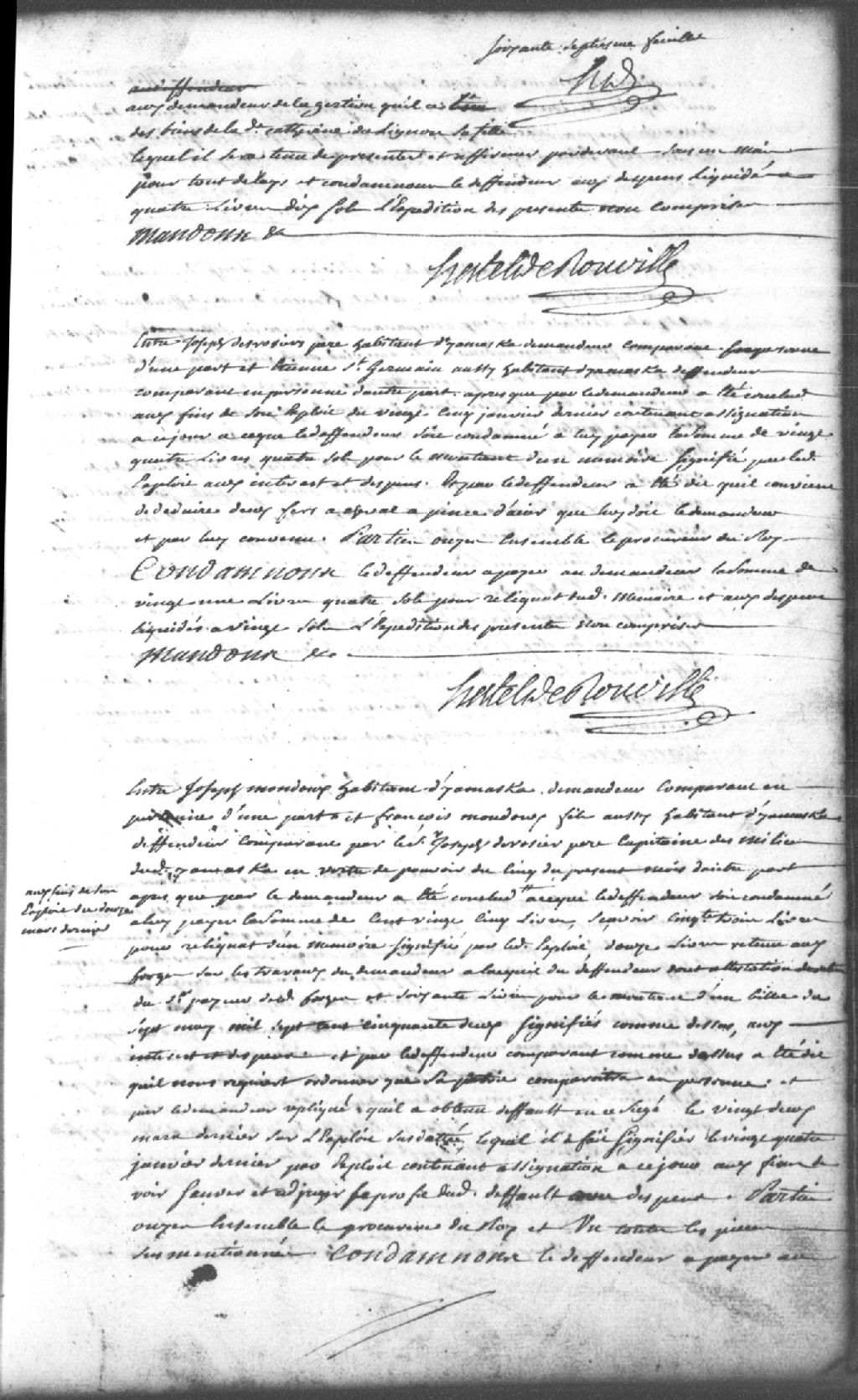Requête de Joseph Desrosiers père, habitant d’Yamaska, demandeur, contre Étienne Saint-Germain, habitant d’Yamaska, défendeur, pour que ce dernier soit condamné à payer au demandeur la somme de 24 livres et 4 sols pour le montant d’un mémoire; le défendeur convient d’en déduire 2 fers à cheval à pince d’acier; le défendeur est condamné à payer au demandeur la somme de 21 livres et 4 sols pour le reliquat du mémoire et aux dépens liquidés à 20 sols
