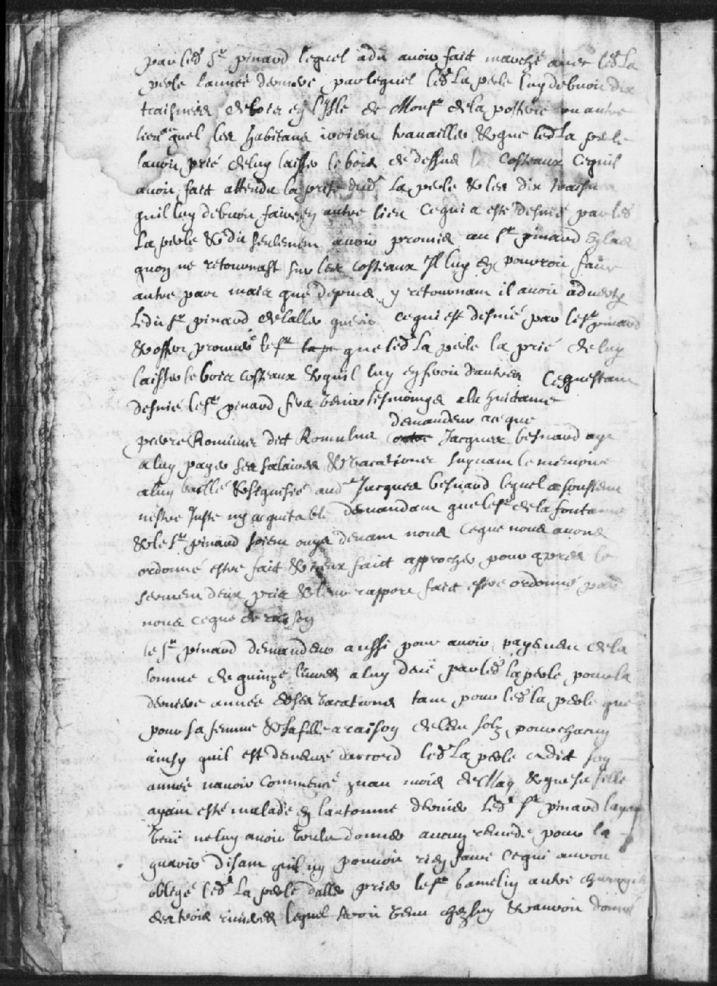 Requête du sieur Pinard, demandeur, contre Pierre Pinot (Pineau) dit la perle (Laperle), pour qu'il lui paye la somme de 15 livres pour la dernière année de ses vacations et 100 sols chacun, pour sa femme et sa fille; la perle demande que Pinard soit débouté pour les refus de soins médicaux à sa fille, laquelle a été soignée par le sieur Gamelin; ledit la perle est prêt à satisfaire les demandes dudit Gamelin pour les remèdes fournis à la fille dudit Pinard