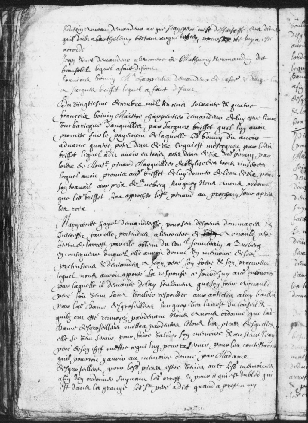 Instance de Jean Vinet, demandeur, à l'encontre de Mathurin Normandin dit Beausoleil; lequel a fait défaut