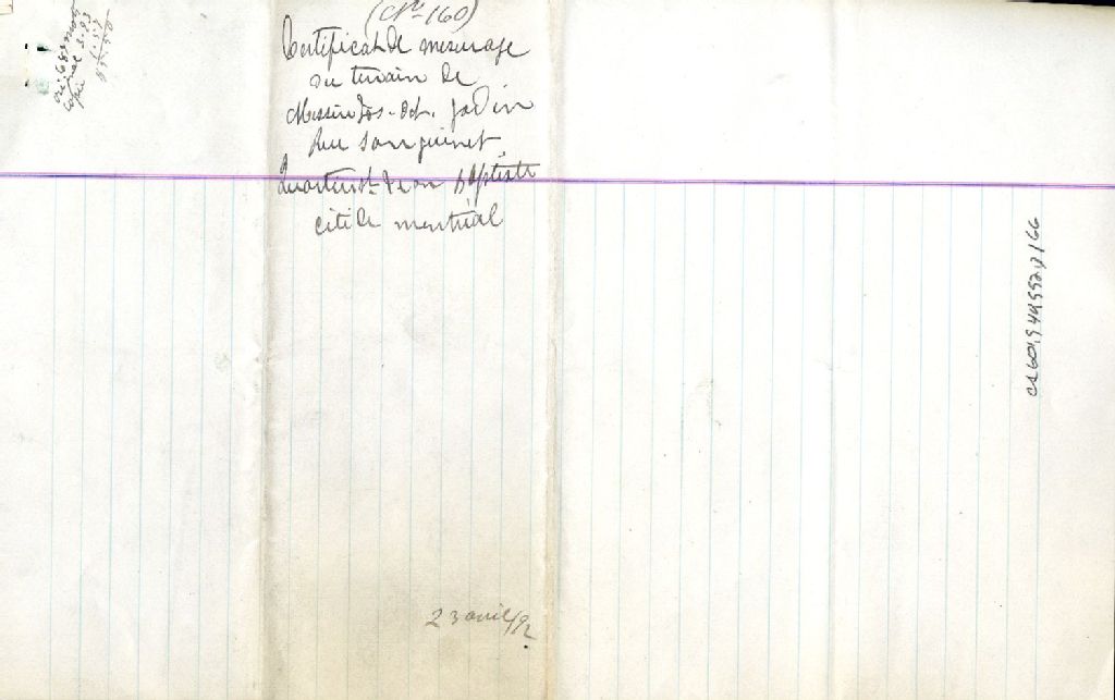 Certificat de mesurage, à la requête de messire Joseph Octave Godin, prêtre et curé de Vaudreuil, de son terrain situé sur la rue Sanguinet dans le quartier Saint-Jean-Baptiste de Montréal, 23 avril 1892, Archives nationales à Montréal, Fonds Cour supérieure. District judiciaire de Montréal. Greffes d'arpenteurs, (06M,CA601,S40,SS2,D166).