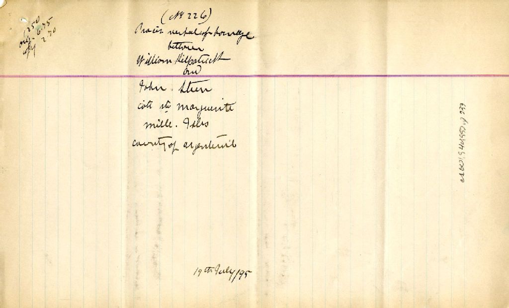 Procès-verbal de bornage, à la requête de William Kilpatrick et à la suite du consentement de John Steen, tous deux cultivateurs du lieu appelé Mille-Îles dans le comté d'Argenteuil, pour établir la ligne de division de leurs terrains situés à la côte Sainte-Marguerite dans le dit lieu, 19 juillet 1895, Archives nationales à Montréal, Fonds Cour supérieure. District judiciaire de Montréal. Greffes d'arpenteurs, (06M,CA601,S40,SS2,D233).