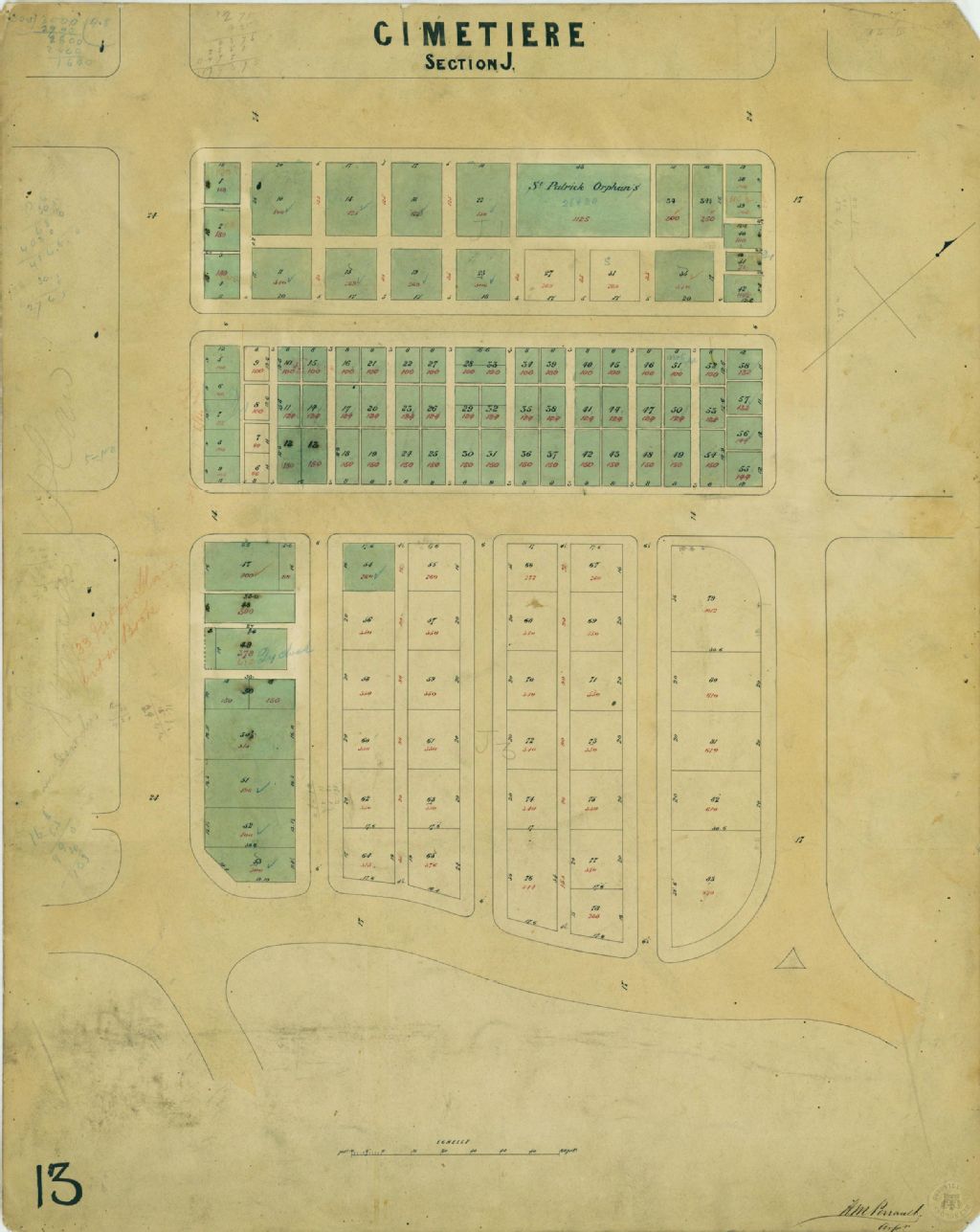 Cette section du cimetière Notre-Dame-des-Neiges contient 83 lots. Un lot est réservé pour l'orphelinat Saint-Patrick. Les mesures des lots sont indiquées