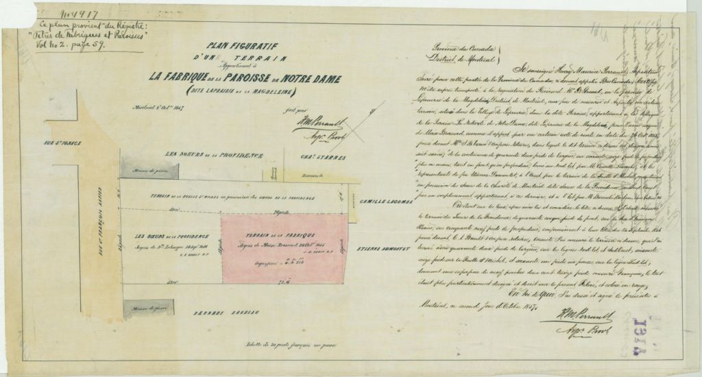 Plan figuratif d'un terrain Appartenant à la fabrique de la paroisse de Notre-Dame (dite Laprairie de la Magdeleine)