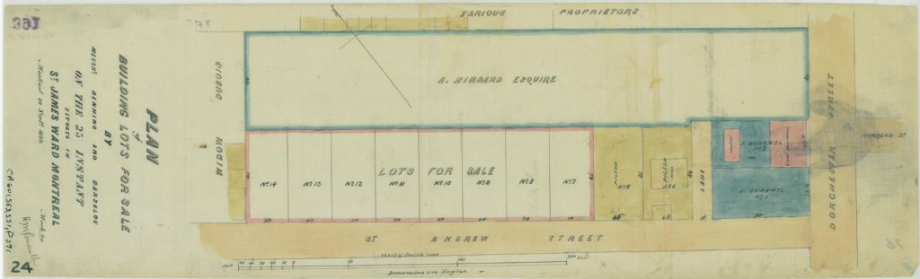 Plan of Building Lots for Sale by Messrs. Benning and Barsalou on the 25 th Instant Situate in the St. James Ward Montreal