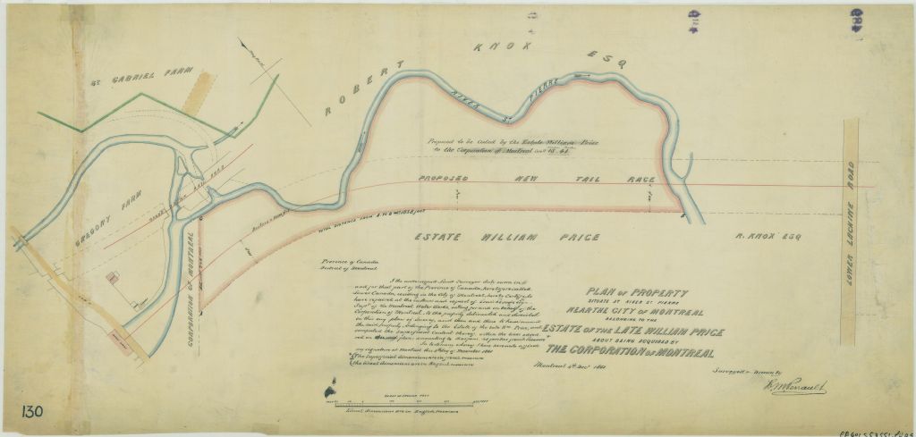 Plan of Property Situated at River St. Pierre Near City of Montreal Belonging to the Estate of the Late William Price About Being Acquired by the Corporation of Montreal