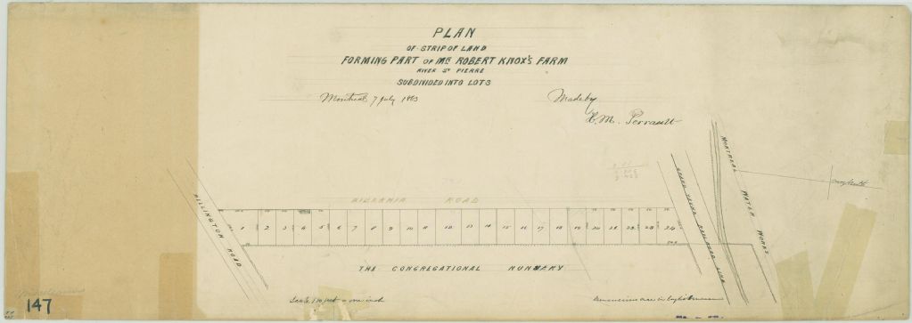 Plan of Strip of Land Forming Part of Mr. Robert Knox's Farm River St Pierre Subdivided into Lots