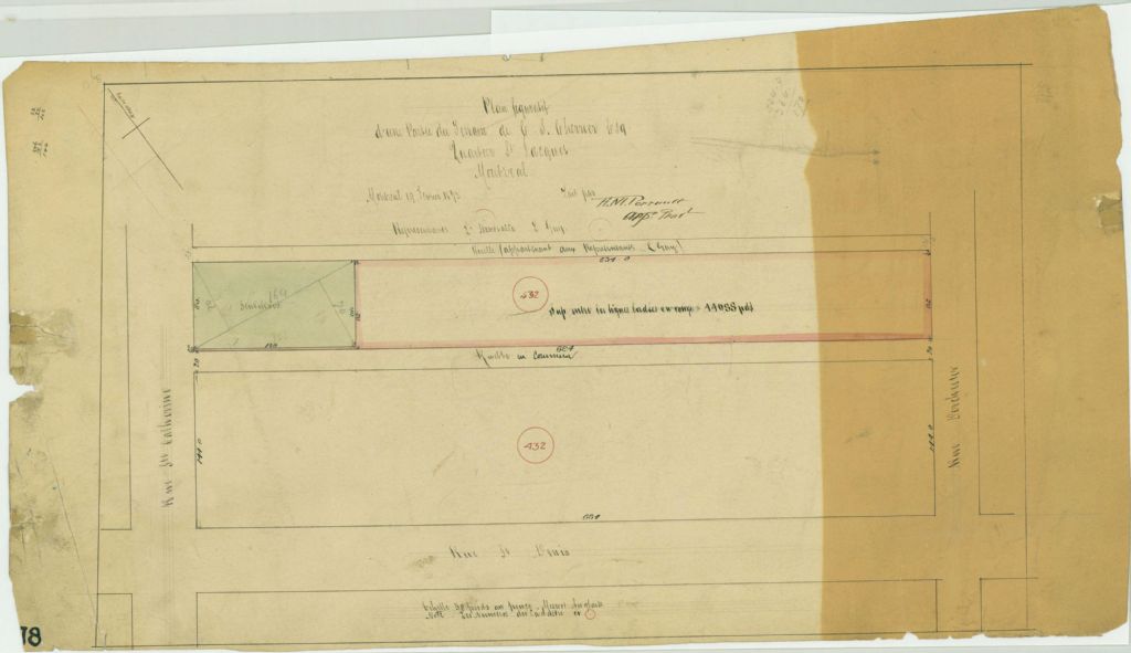 Plan figuratif d'une partie du terrain de C. S. Cherrier écr quartier St. Jacques Montréal