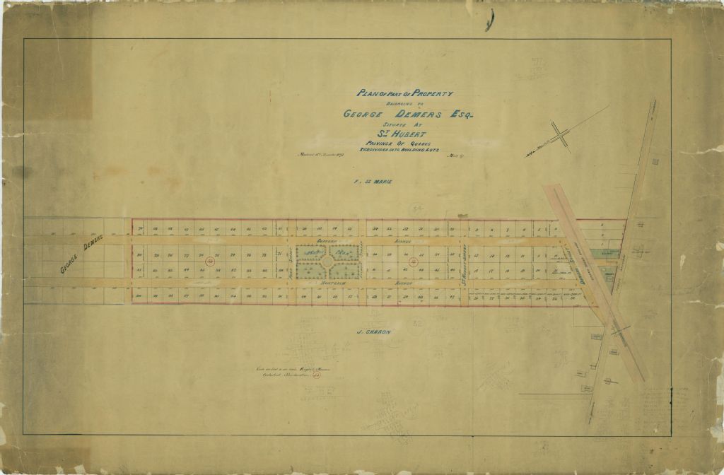 Plan of Part of Property Belonging to George Demers Esq. Situate at St-Hubert Province of Quebec Subdivided into Building Lots