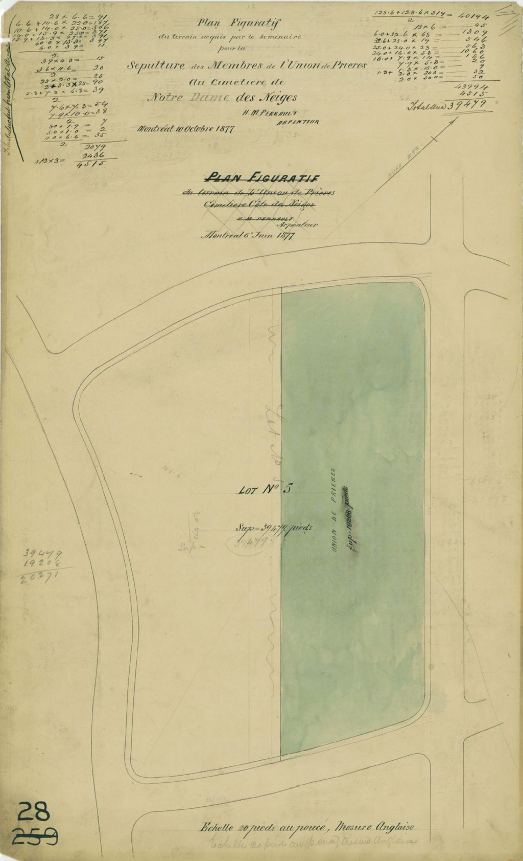 Plan figuratif du terrain acquis par le Séminaire pour la sépulture des membres de l'Union de Prières au cimetière de Notre Dame des Neiges