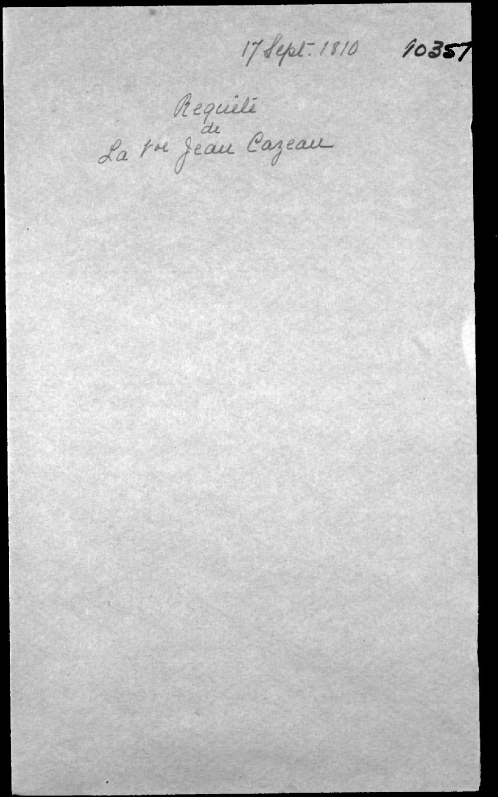 Requête pour nommer un curateur à la succession vacante de feu Jean Caseau (Casault, Cazeau), Charron du faubourg Saint-Roch à Québec, et de Marie-Madeleine Chabot, 17 septembre 1810, Archives nationales à Québec, Fonds Cour supérieure. District judiciaire de Québec. Tutelles et curatelles, (03Q,CC301,S1,D10357).