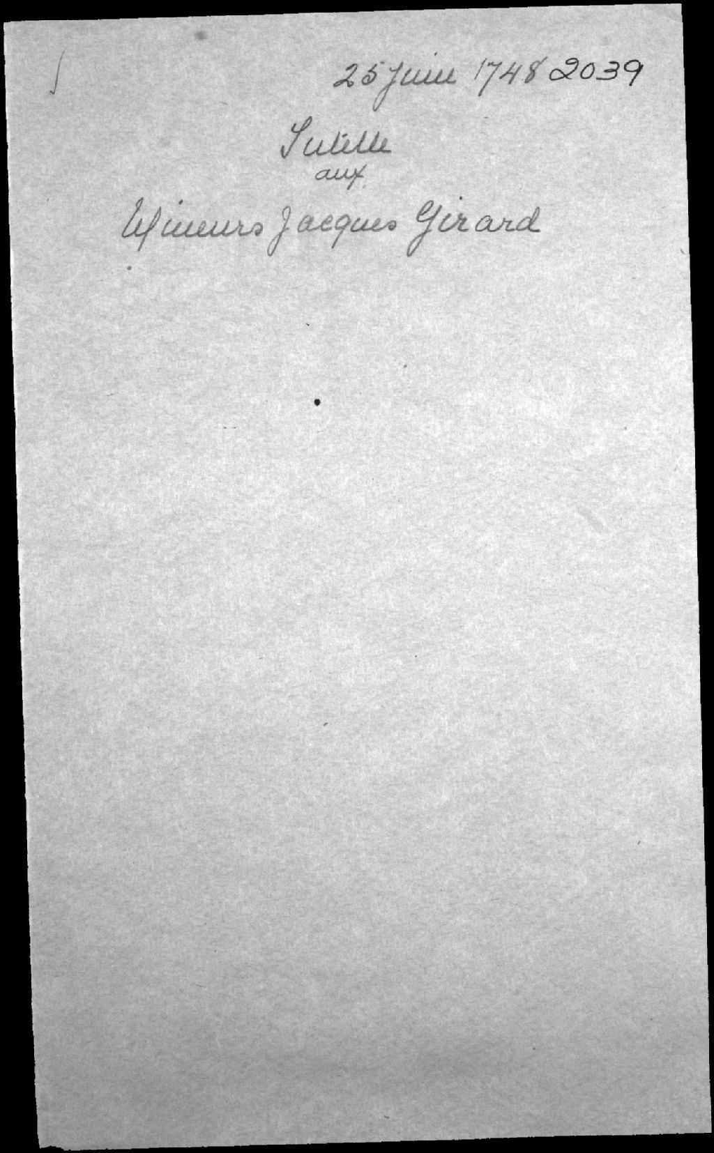 Tutelle aux mineurs de feu Jacques Girard, forgeron, de Neuville, et de Marie-Clothilde Brisson, 25 juin 1748, Archives nationales à Québec, Fonds Cour supérieure. District judiciaire de Québec. Tutelles et curatelles, (03Q,CC301,S1,D2039).