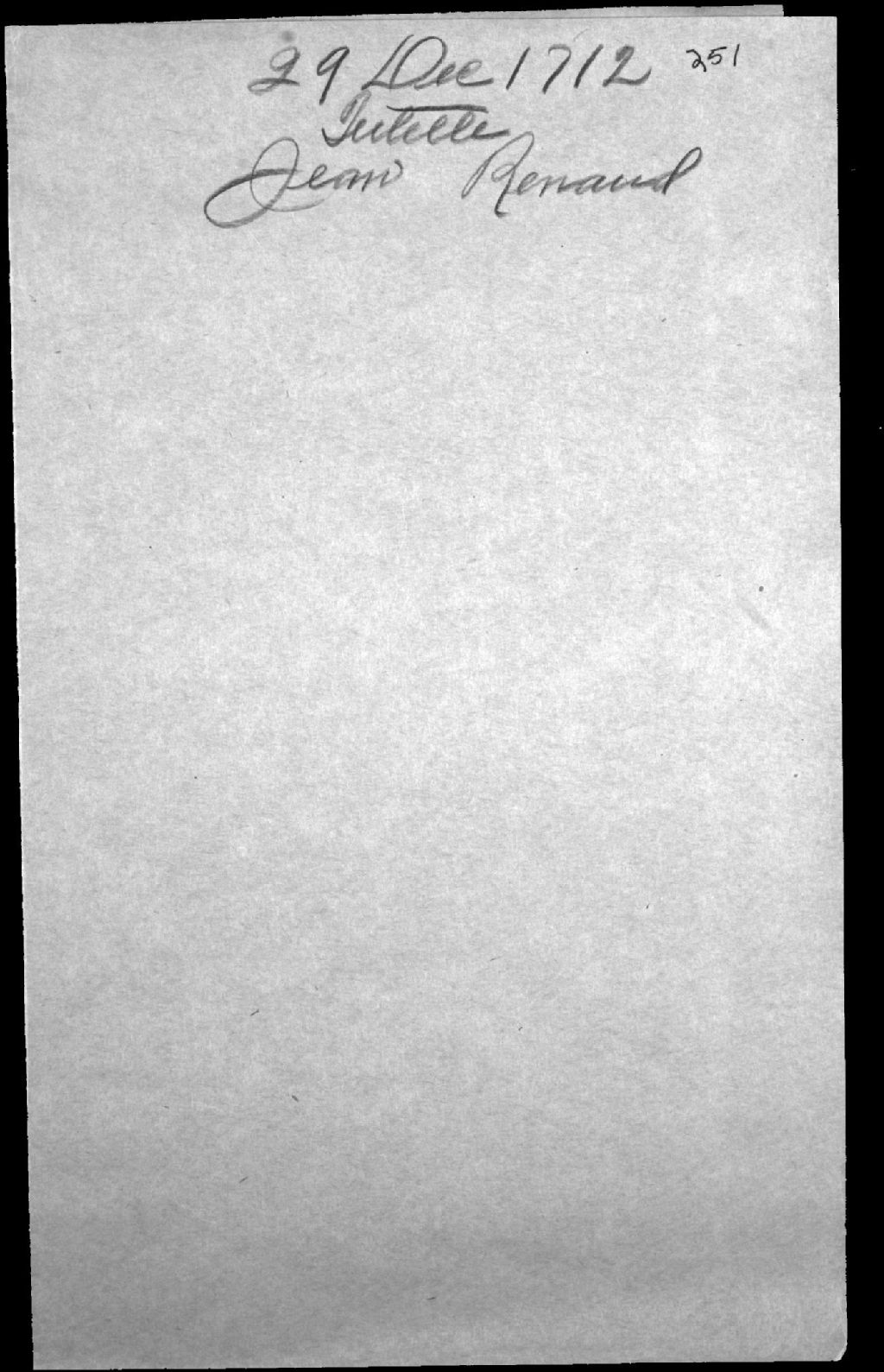 Tutelle aux mineurs de feu Jean Renaud, charretier, de Québec, et de Françoise Fontaine, 29 décembre 1712, Archives nationales à Québec, Fonds Cour supérieure. District judiciaire de Québec. Tutelles et curatelles, (03Q,CC301,S1,D251).