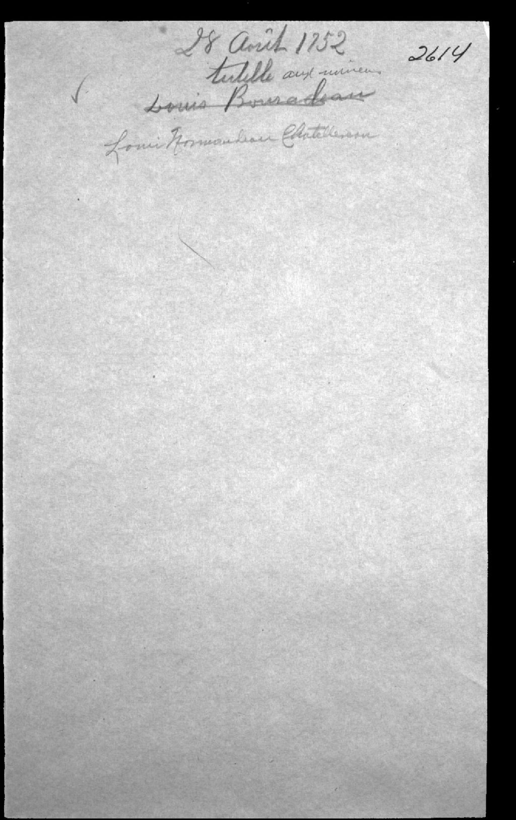 - La pièce se compose d'un suplique de Marie-Geneviève Chalifou (Chalifour), veuve du feu Louis Bonadeau (Bonnadeau) Chatellerault (Chatellereau), demeurant à Québec, les trois enfants mineurs issus de leur union sont Louis, Michel et Geneviève Chatellereau, ladite supplique afin de faire élire un tuteur et un subrogé tuteur audits mineurs, suit la premission de procéder à l'assemblée des parents et amis desdits mineurs, suit le procès-verbal de l'élection de la tutelle, sont mentionnés un nommé côté, cousin, André Côté, Marie-Anne Boutret (Boutet?), Joseph-Charles Laurent, Jean Chalifour, oncle, Pierre Pilote, oncle, Henri Parent, oncle, Pierre Petiton DesMarets (DesMarais), Jean-Baptiste Juchereau, et Louisette Feuillé?, il est ordonné que ladite veuve restera tutrice des mineurs et un nommé (?) Côté est nommé comme subrogé tuteur.