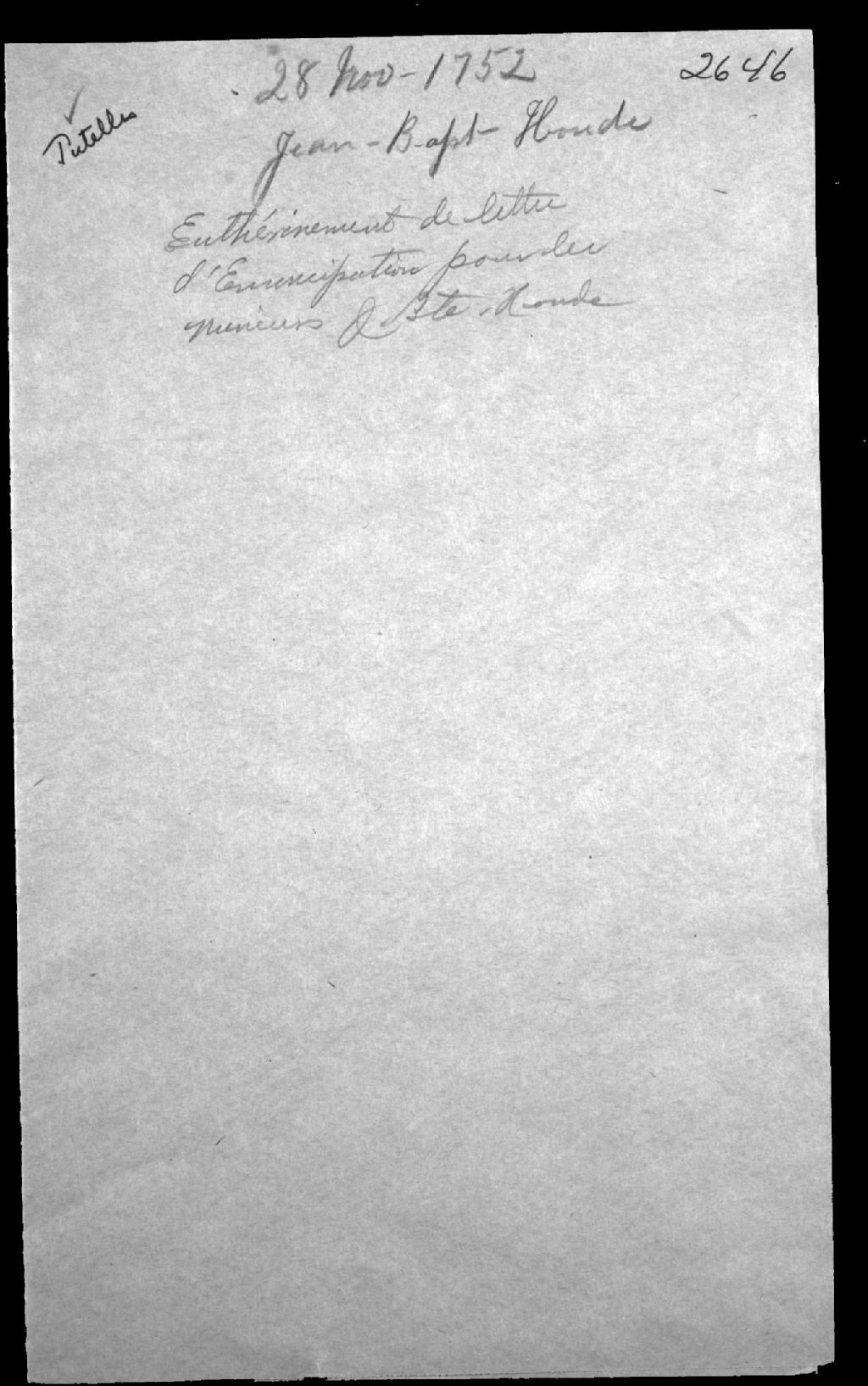 - Acte d'enchérissement de lettres d'émancipation des mineurs de feu Jean-Baptiste Houde et de feue Marie-Thérèse Richer