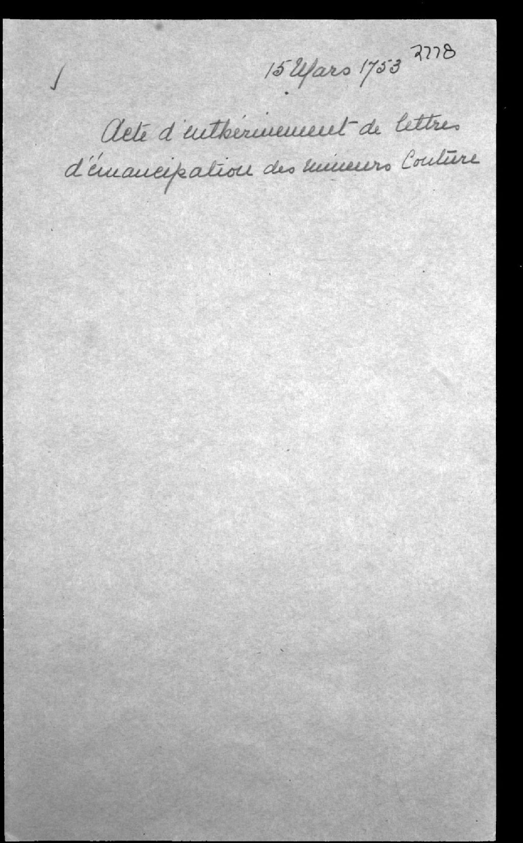 - Acte d'entérinement de lettres d'émancipation des mineurs de feu Augustin Couture et d'Élisabeth Carrier