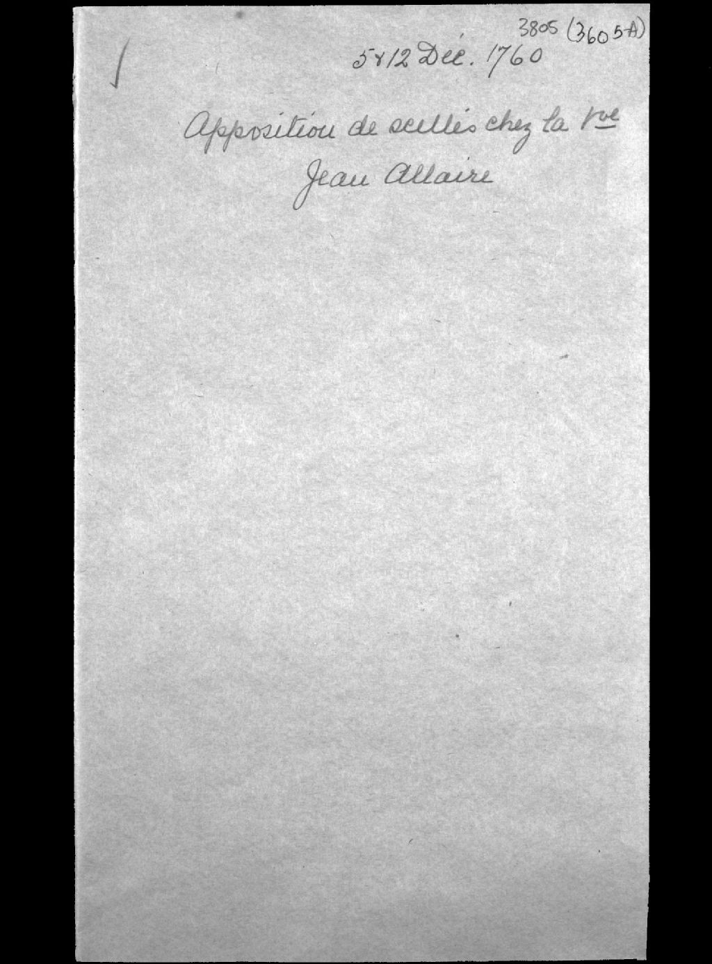 Apposition des scellés relative à la succession de feu Jean Allaire, habitant de Saint-Joachim, époux de Marie-Anne Mercier