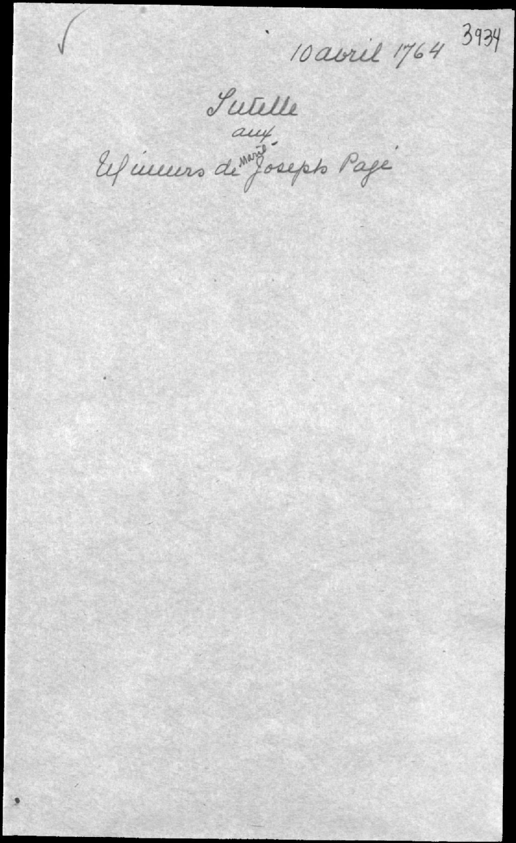 Tutelle aux mineurs de feu Louis Bertrand, de Cap-Santé, et de Marie-Josèphe (Josephte, Josette) Pagé, 10 avril 1764, Archives nationales à Québec, Fonds Cour supérieure. District judiciaire de Québec. Tutelles et curatelles, (03Q,CC301,S1,D3934).