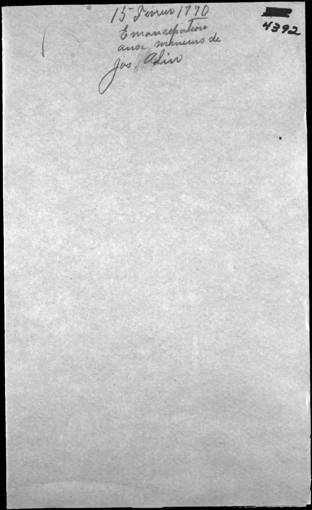 Émancipation de Joseph, fils mineur de feu Joseph Alain et de feue Marie-Madeleine Cloutier, 15 février 1770, Archives nationales à Québec, Fonds Cour supérieure. District judiciaire de Québec. Tutelles et curatelles, (03Q,CC301,S1,D4392).