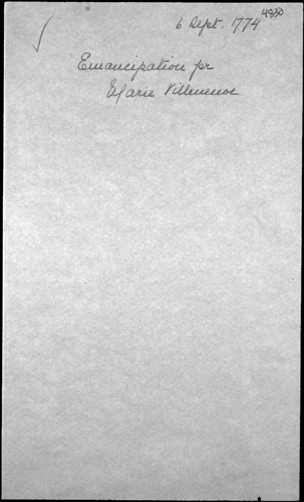 Émancipation de Marie, fille mineure de feu Germain Villeneuve et de Josèphe (Josephte, Josette) Parent, 2 septembre 1774 et 6 septembre 1774, Archives nationales à Québec, Fonds Cour supérieure. District judiciaire de Québec. Tutelles et curatelles, (03Q,CC301,S1,D4830).
