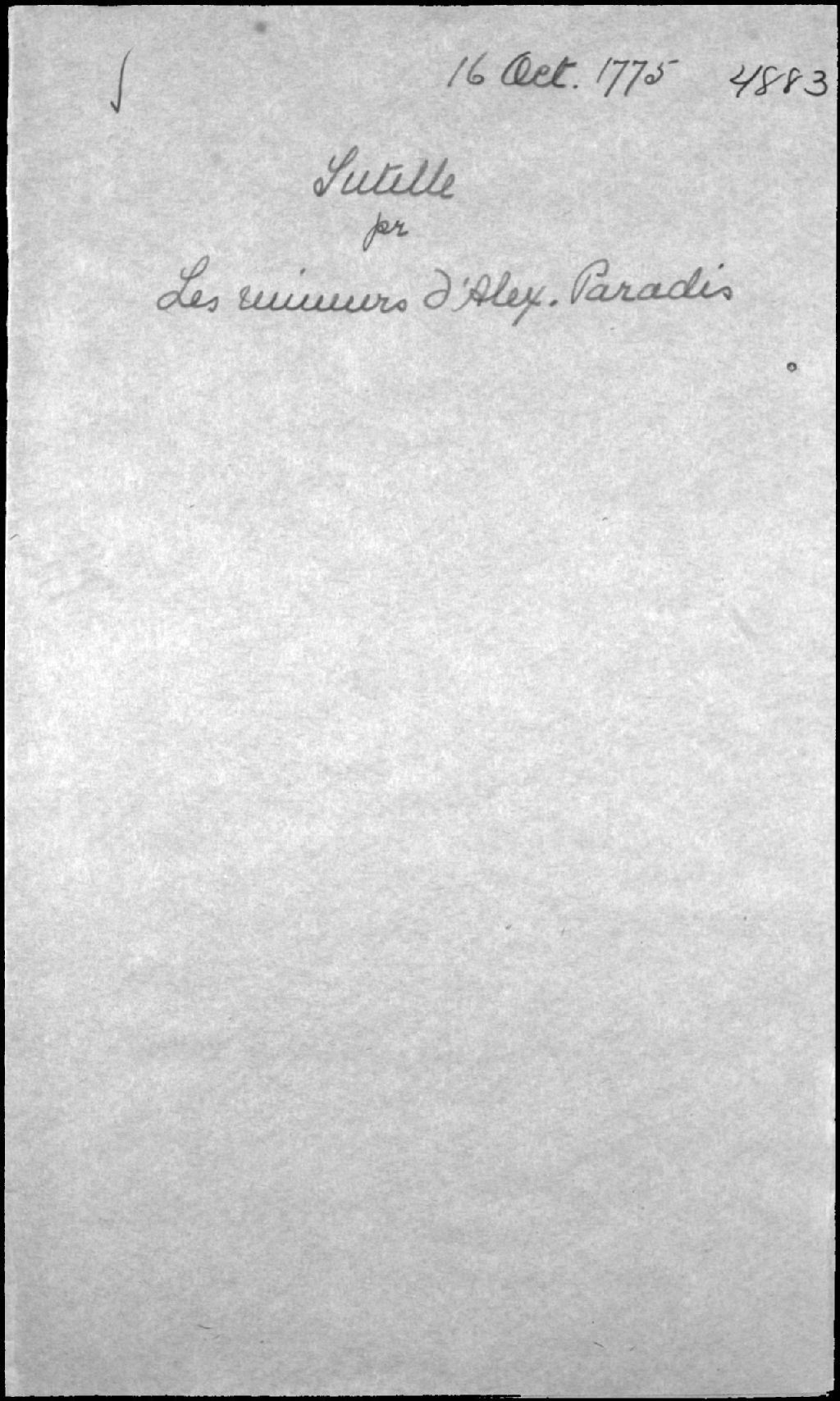 Tutelle aux mineurs de feu Alexandre Paradis, habitant de la paroisse de Kamouraska, et de Marie-Josèphe (Josephte, Josette) Ouelette (Ouellet), 16 octobre 1775, Archives nationales à Québec, Fonds Cour supérieure. District judiciaire de Québec. Tutelles et curatelles, (03Q,CC301,S1,D4883).