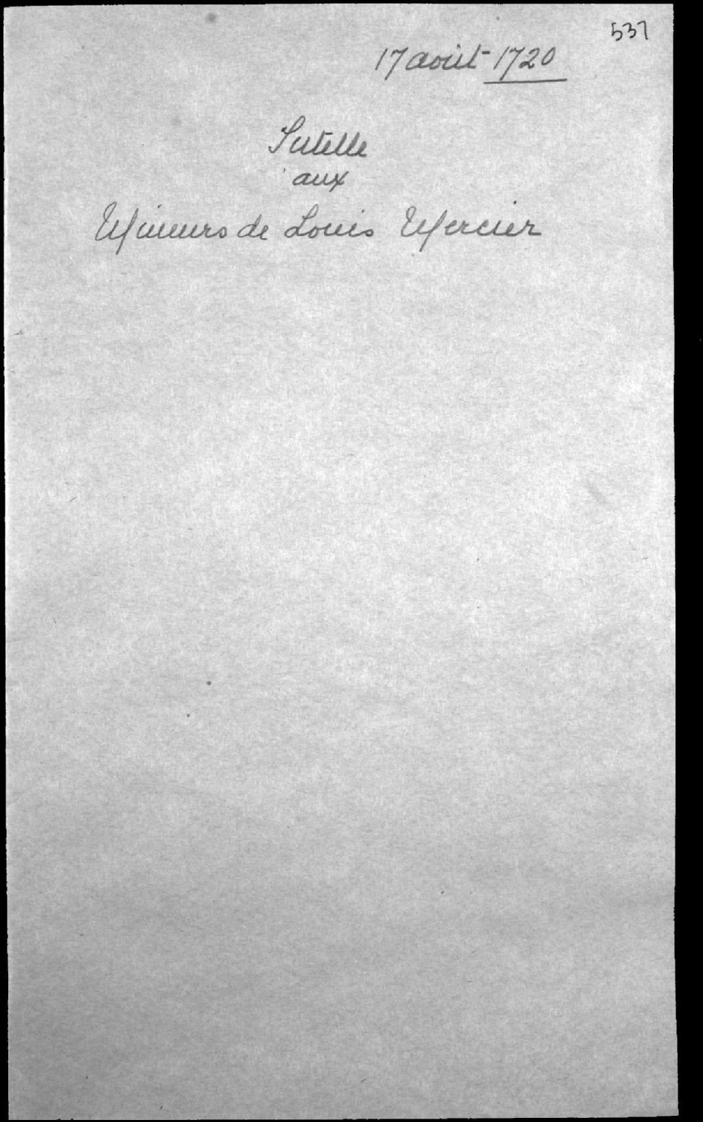 - Tutelle aux mineurs de Louis Mercier, serrurier de Québec, et de feue Marguerite Jacquereau