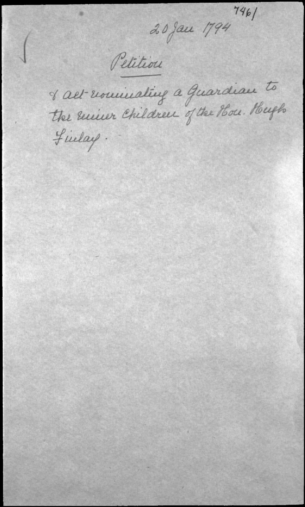 Tutelle aux mineurs d'Hugh Finlay, écuyer de la ville de Québec, et de feue Mary Finlay (Finley)