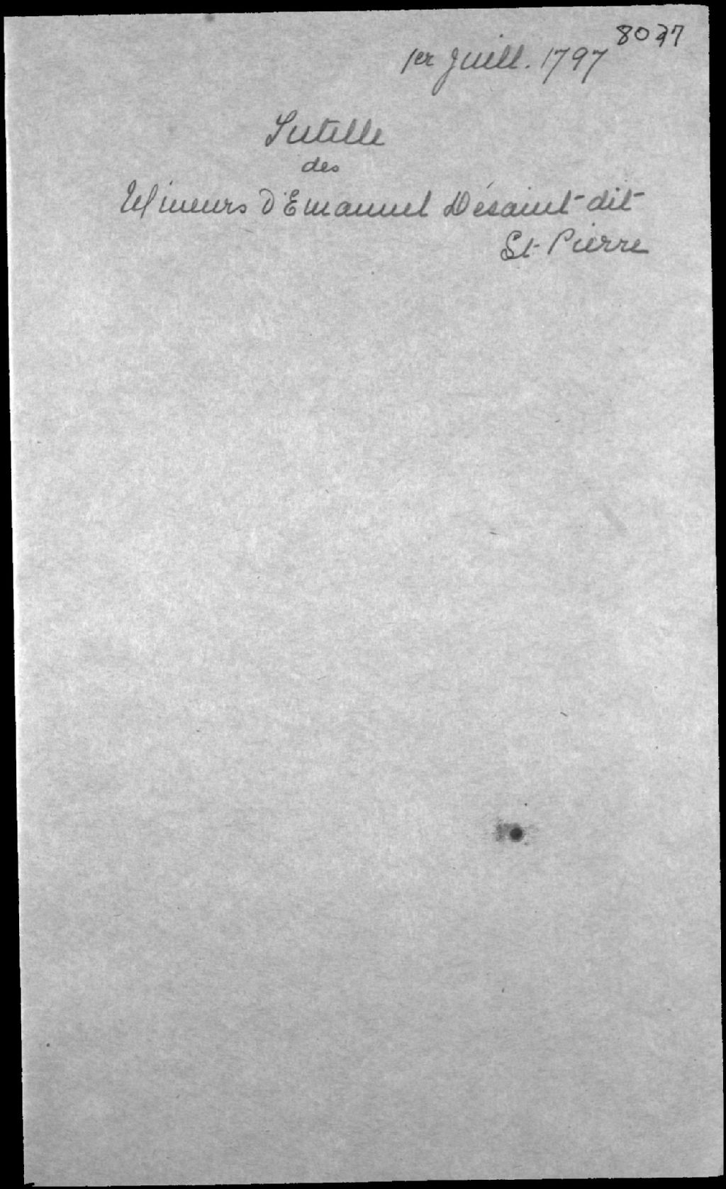 Tutelle aux deux mineurs d'Emmanuel Dessaint (Desaint) dit Saint-Pierre, habitant de Saint-Roch, comté de Devon (Saint-Roch-des-Aulnaies), et de feue Madeleine D'Amour de Corpron (Damours de Corpron, de Courberon)