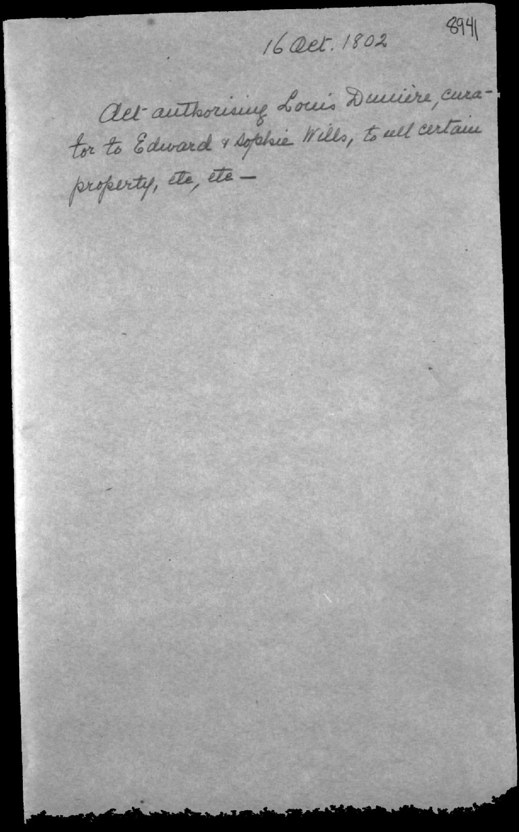 - Autorisation d'un curateur pour vendre des propriétés provenant de la succession de feu Meredith Wills, encanteur (commissaire-priseur) de Québec, et de feue Geneviève Dunière (Gunière)