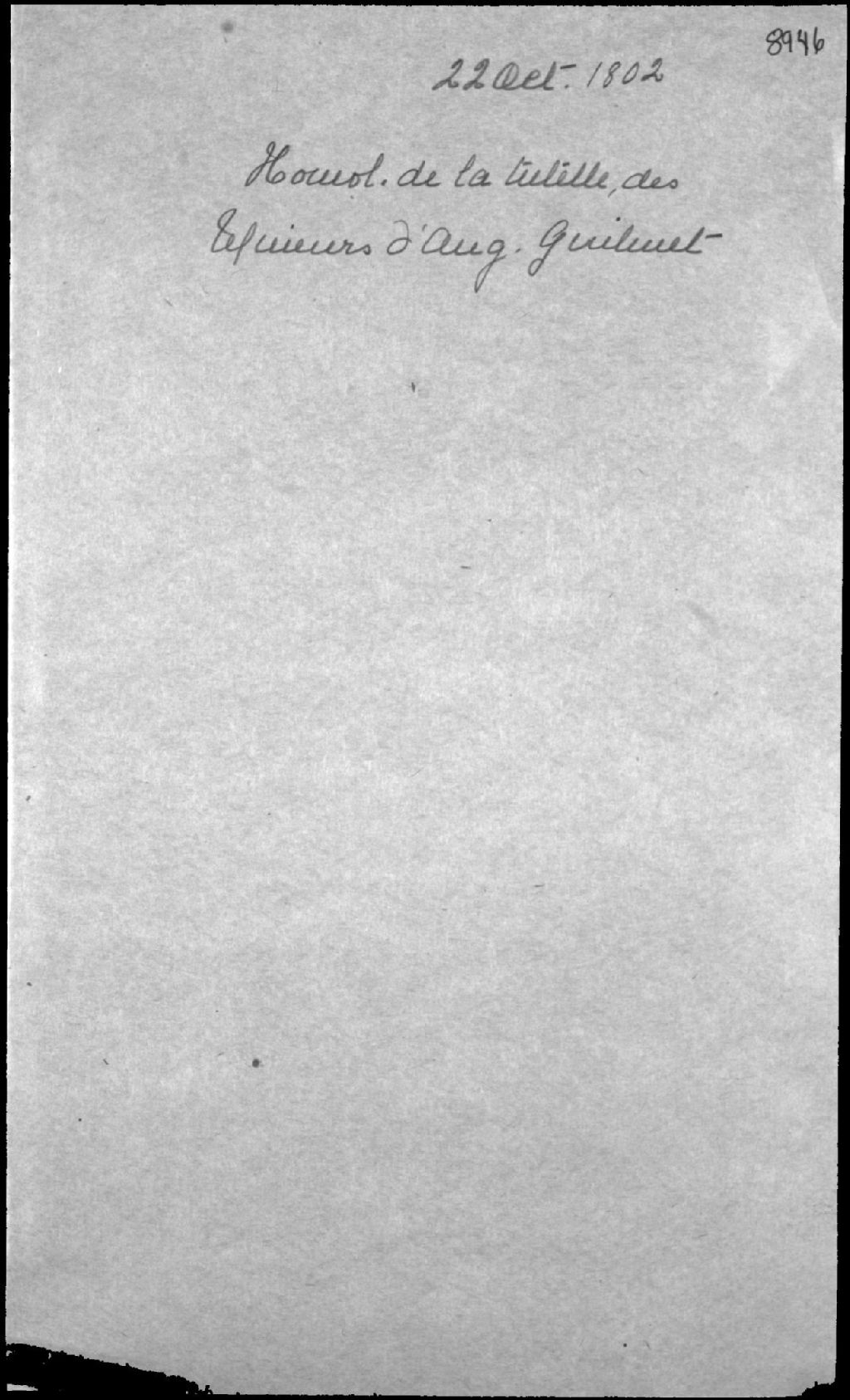 Homologation de la tutelle des enfants mineurs d'Augustin Guilmet (Guillemette), habitant de Saint-Charles-de-la-côte du Sud (Saint-Charles-de-Bellechasse), et de feue Marthe Poulin, 22 octobre 1802, Archives nationales à Québec, Fonds Cour supérieure. District judiciaire de Québec. Tutelles et curatelles, (03Q,CC301,S1,D8946).