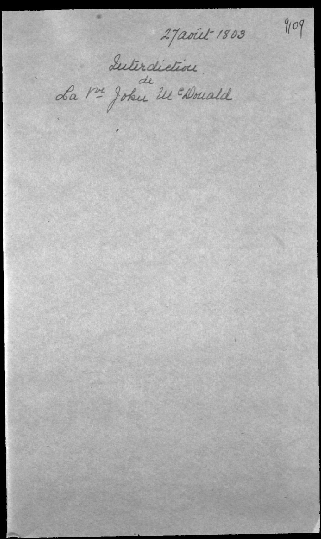 - Interdiction d'ester en justice d'une personne démente enfant de feu John McDonald, de Québec, et de Marie Orpin, démente