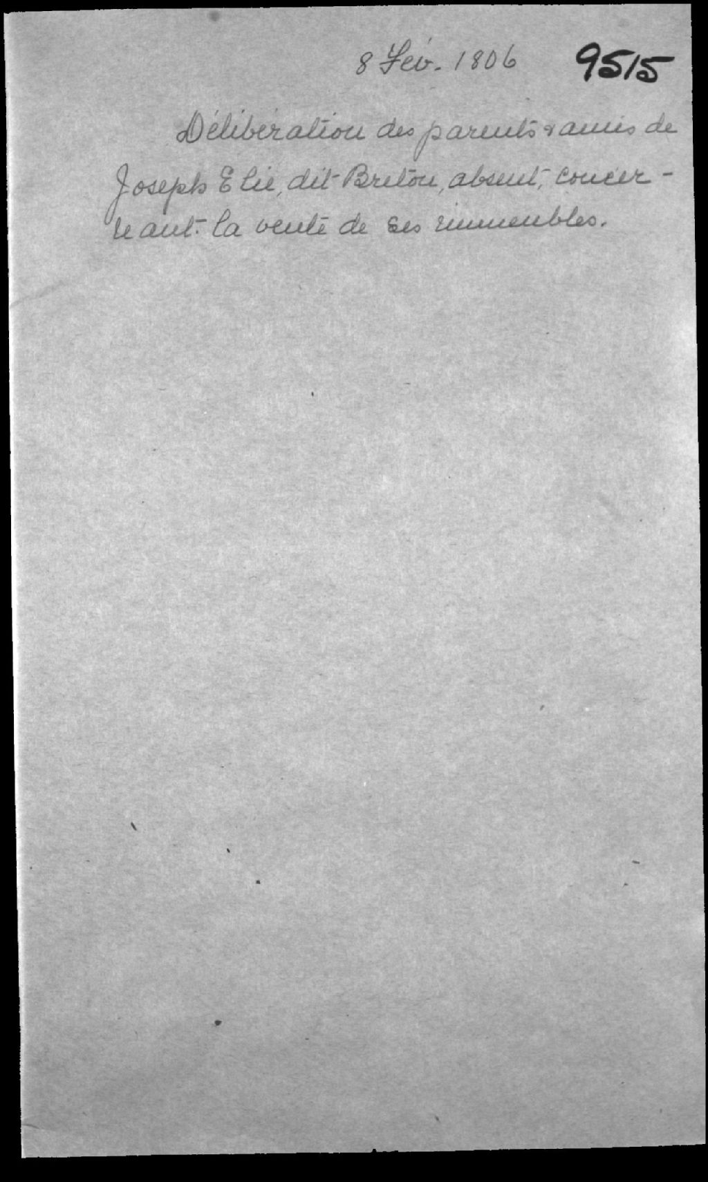 - Délibération de parents et amis concernant la vente des immeubles de feu Jean-Baptiste Élie dit Breton, habitant de Saint-Michel (Saint-Michel-de-Bellechasse), et de ? Roy