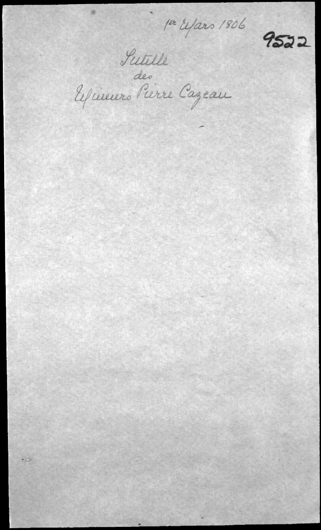 Tutelle des enfants mineurs de Pierre Caseau (Casault, Cazeau), maître charron du quartier Saint-Vallier à Québec, et de feue Marie Dion