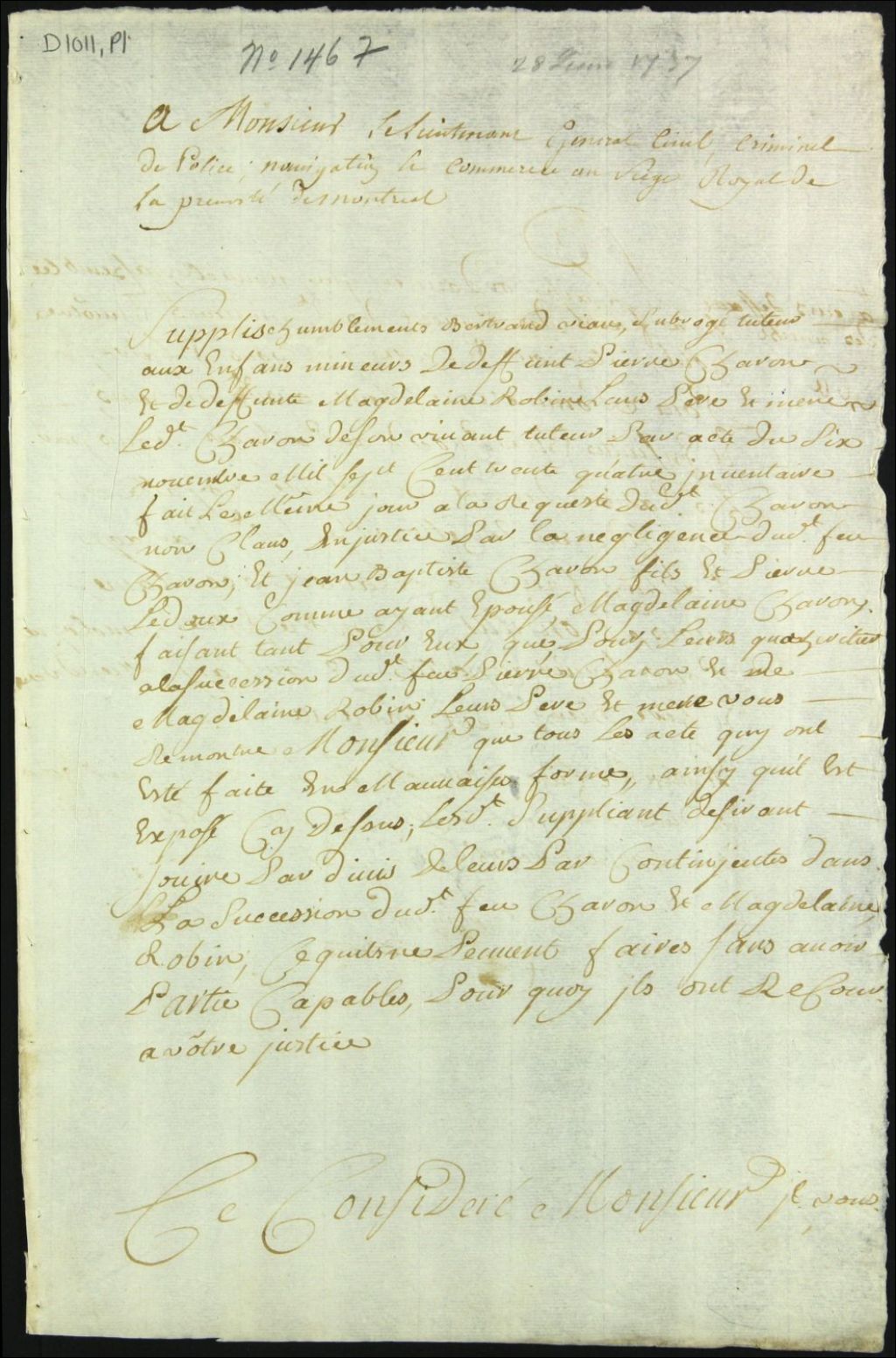 - Tutelle des enfants mineurs des défunts Pierre Charon et Madeleine Robin [Lapointe]