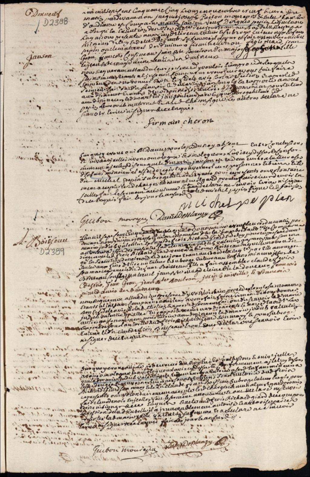 Tutelle des enfants mineurs de feu Antoine Boisseau et de Marie Judith Valentin [Grégoire], 14 novembre 1755, Archives nationales à Montréal, Fonds Cour supérieure. District judiciaire de Montréal. Tutelles et curatelles, (06M,CC601,S1,SS1,D2389).
