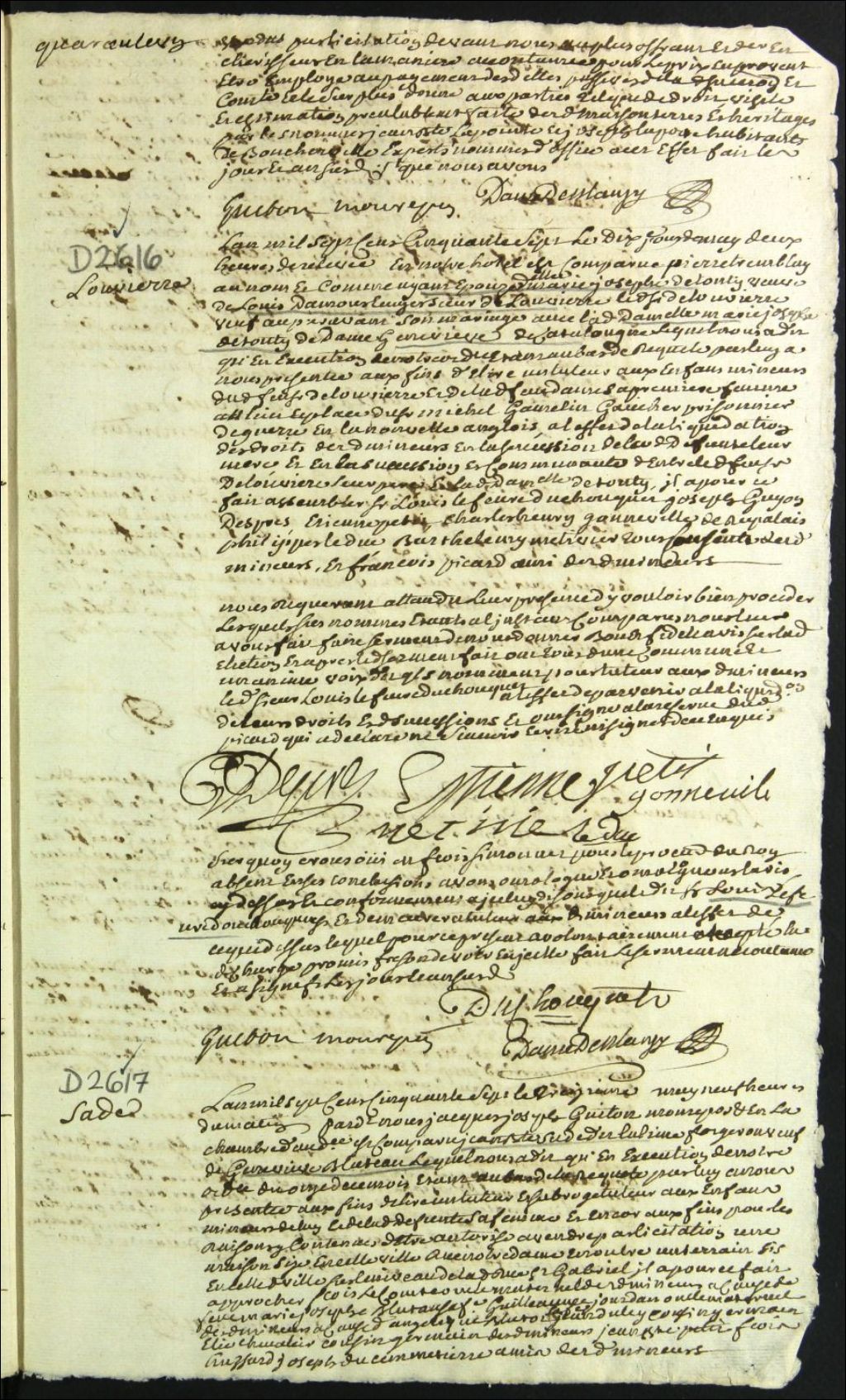 Tutelle des enfants mineurs de feu Geneviève Bluteau [Larabelle] et de Jean Baptiste Sade Lalime, 13 mai 1757, Archives nationales à Montréal, Fonds Cour supérieure. District judiciaire de Montréal. Tutelles et curatelles, (06M,CC601,S1,SS1,D2617).